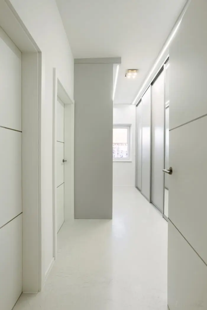 Der Boden wurde in einer modernen Betonbeschichtung auf Zementbasis in einer Spachteltechnik ausgeführt.