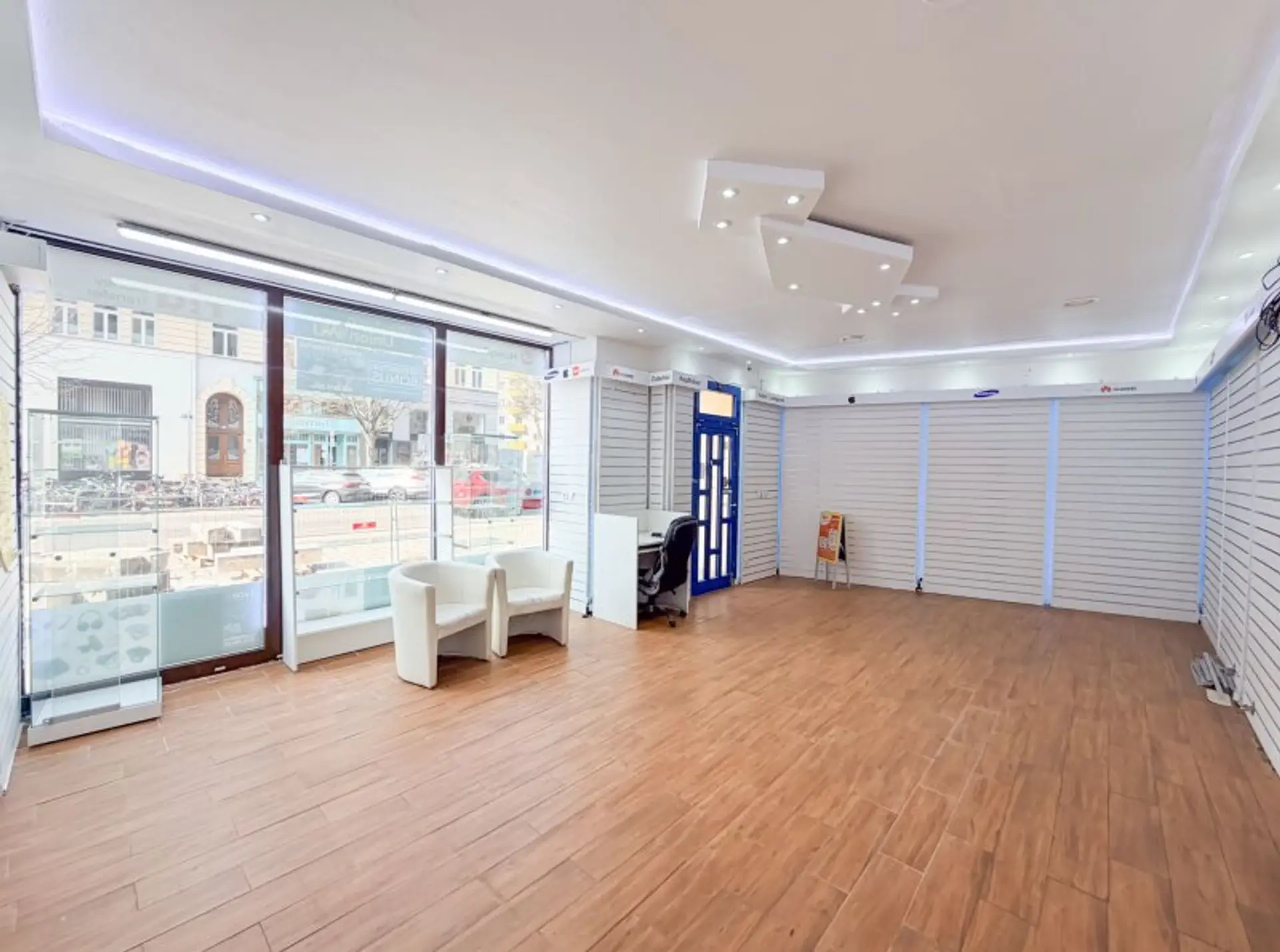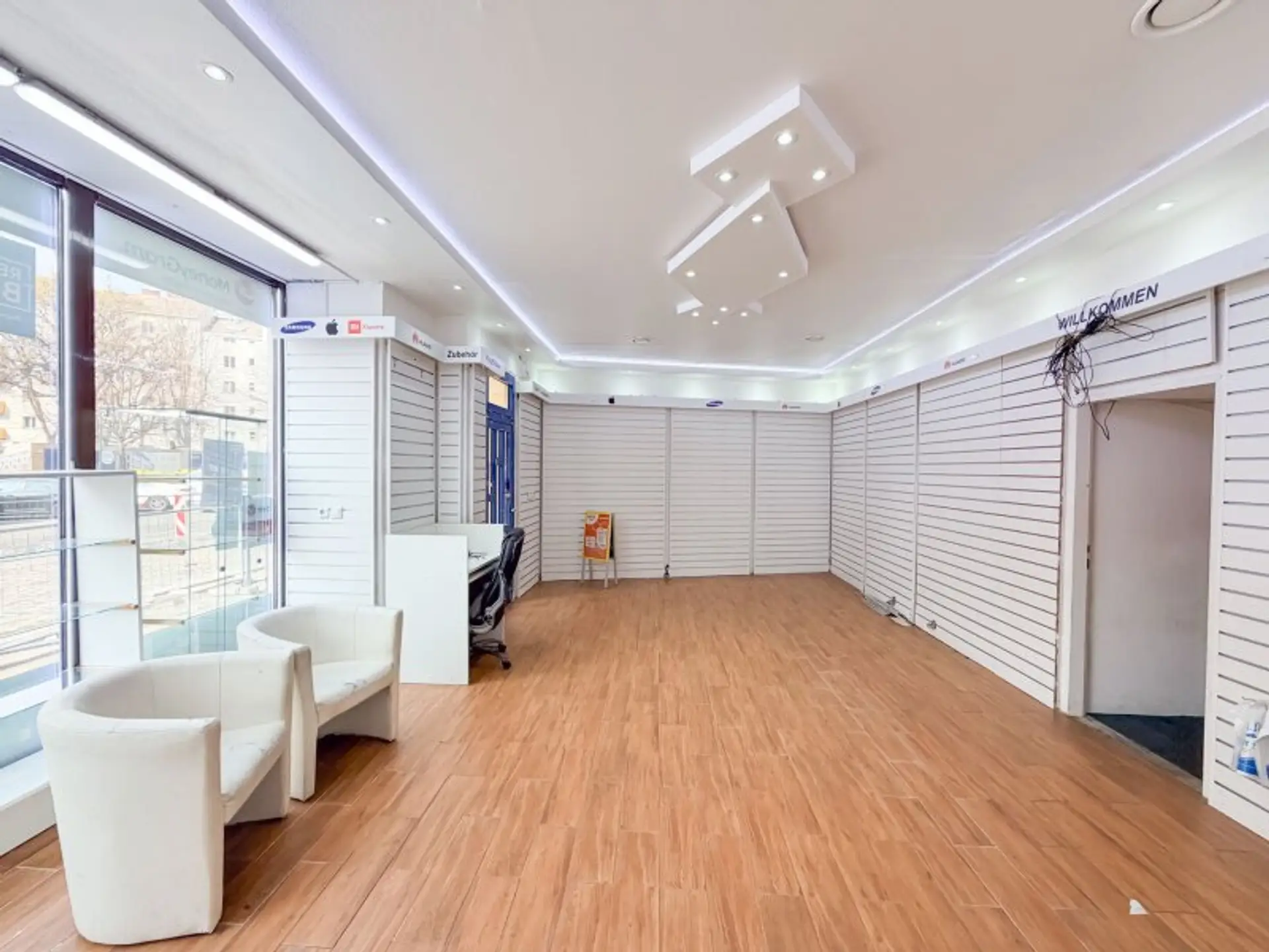 - ein zirka 36 m2 großer, heller straßenseitiger Verkaufsraum