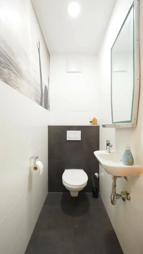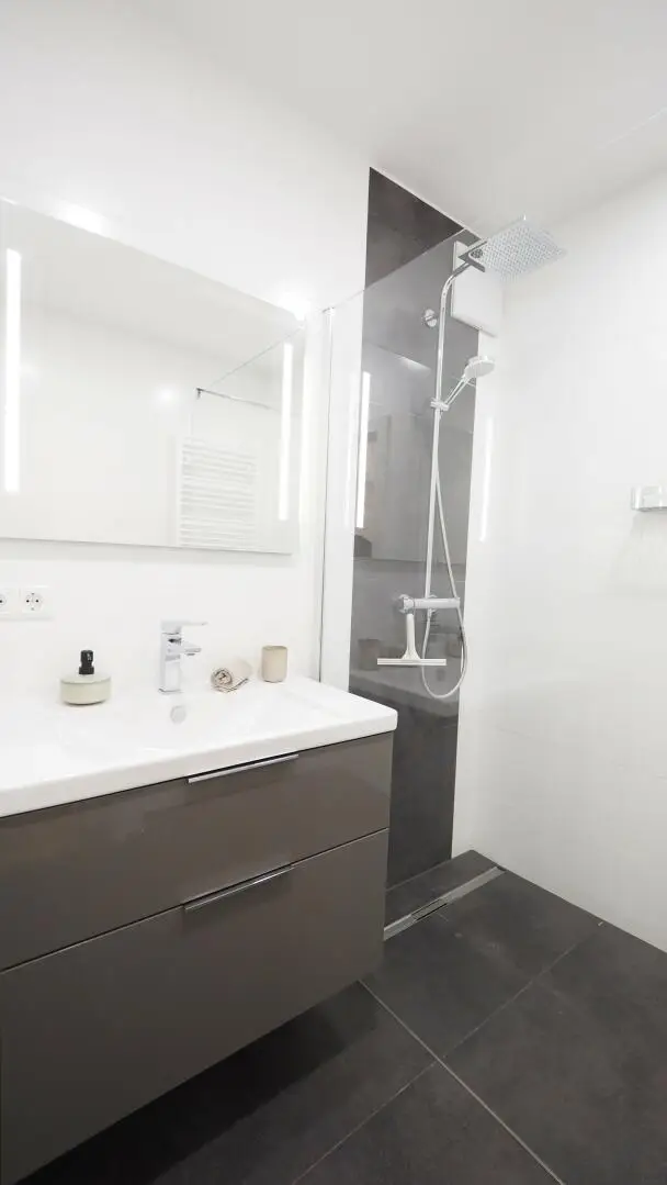 Vom Vorraum mit extra WC und Abstellraum kommt man in einen offenen und modernen Wohn/Kochbereich mit neuwertiger Küche. Ein großzügig dimensionierter Doppelflügelausgang führt auf die überdachte Loggia mit viel Platz zum Verweilen in der Abendsonne. Eine Markise kann zur Beschattung ausgefahren werden. Das Schlafzimmer ist ebenfalls groß und beherbergt einen modernen Kasten. Alle Außenfenster/Türen können mit Jalousien verdunkelt werden. Das Bad ist modern mit Waschtisch, bodenebener Dusche und Handtuch-Heizkörper ausgestattet, das extra WC mit Handwaschbecken im gleichen Stil gehalten. Ein Abstellraum mit Waschmaschinenanschluß und ein Kellerabteil stehen auch zur Verfügung. Vor dem Haus gibt es Parkplätze für die Bewohner!