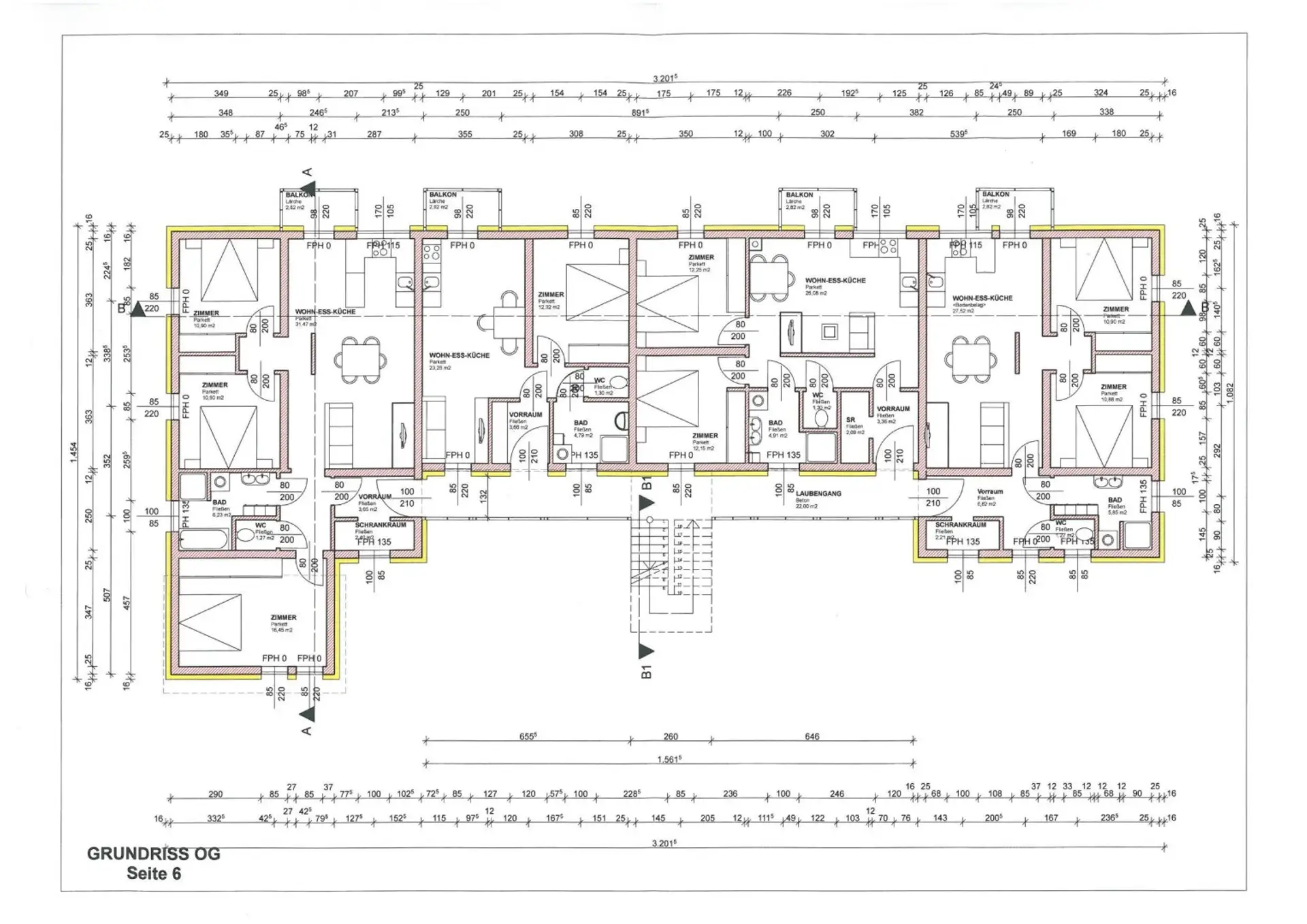 Die 9 Wohnungen sind jeweils separat über einen Laubengang erreichbar. Jeder Wohnung ist zusätzlich ein separater Abstellraum im allgemein zugänglichen Bereich sowie ein überdachter PKW-Abstellplatz zugeteilt.