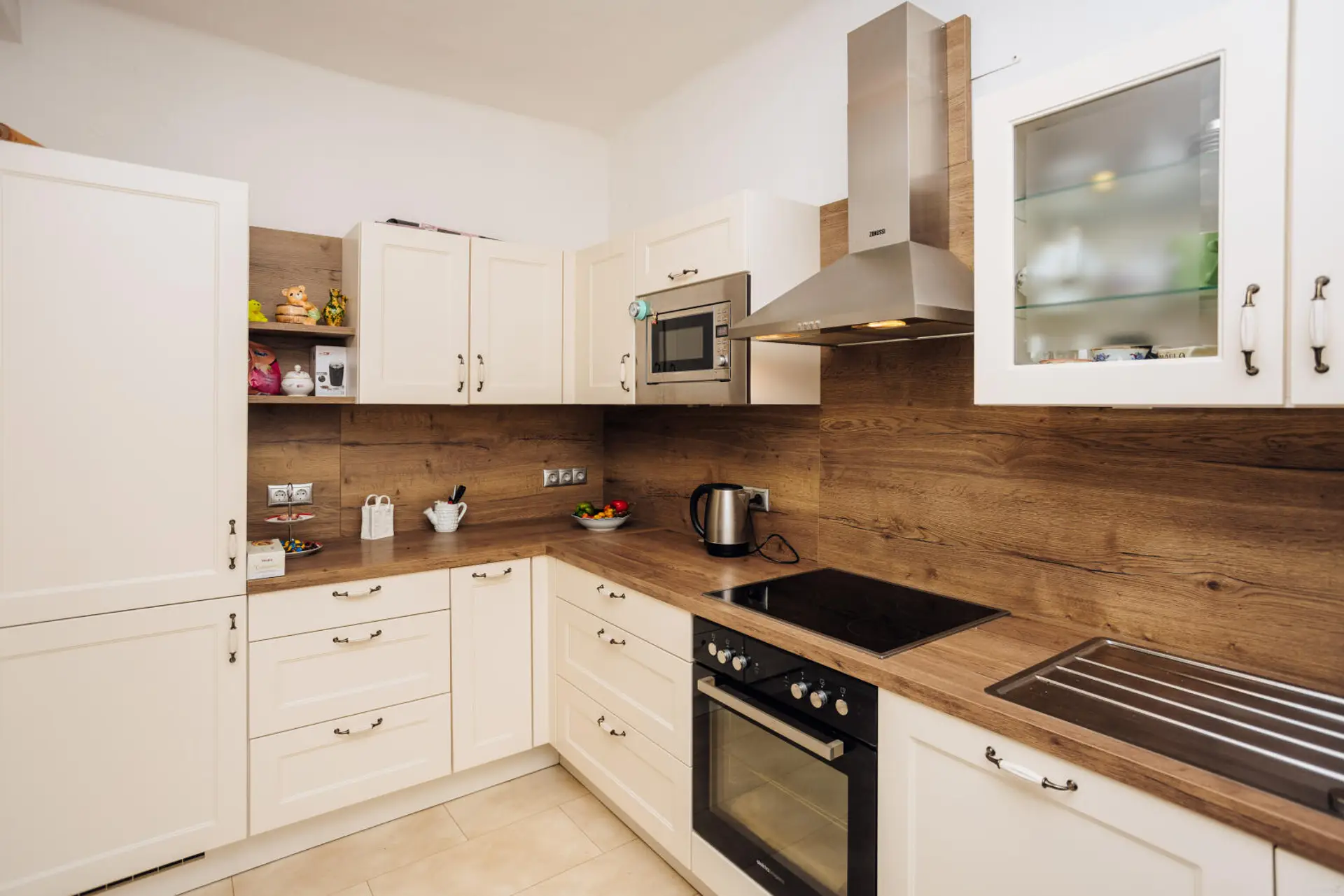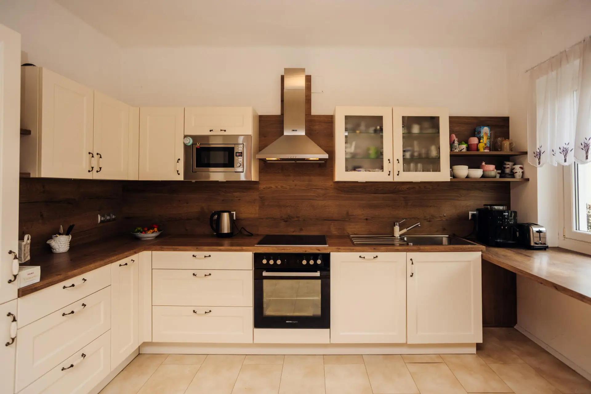 gut ausgestattete Küche (Kühlschrank/Ofen/Kaffeemaschine) sowie