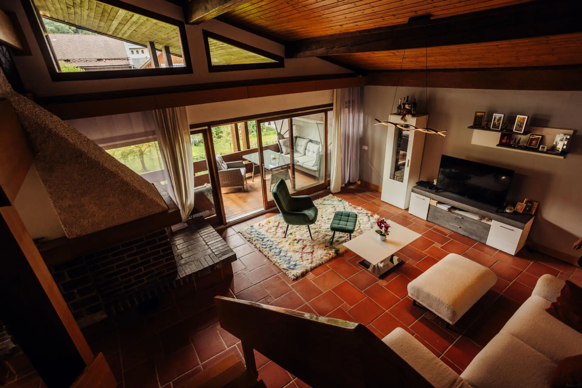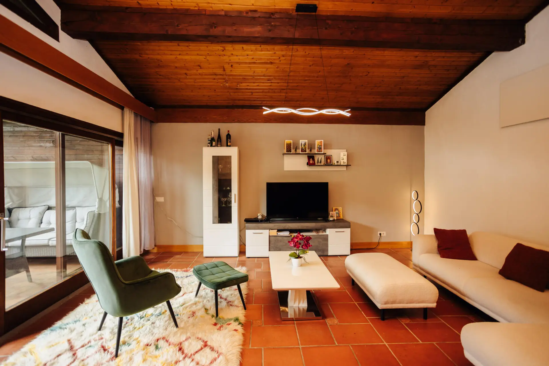 - Zwei Einheiten plus Galerie: Die separate Wohnung im Erdgeschoss mit ca. 60 m² wird bereits als Ferienwohnung vermietet, das Obergeschoss mit ca. 150 m² mit sonnigem Balkon, schöner Küche und offenem Kamin; zusätzlich ausgebaute Galerie