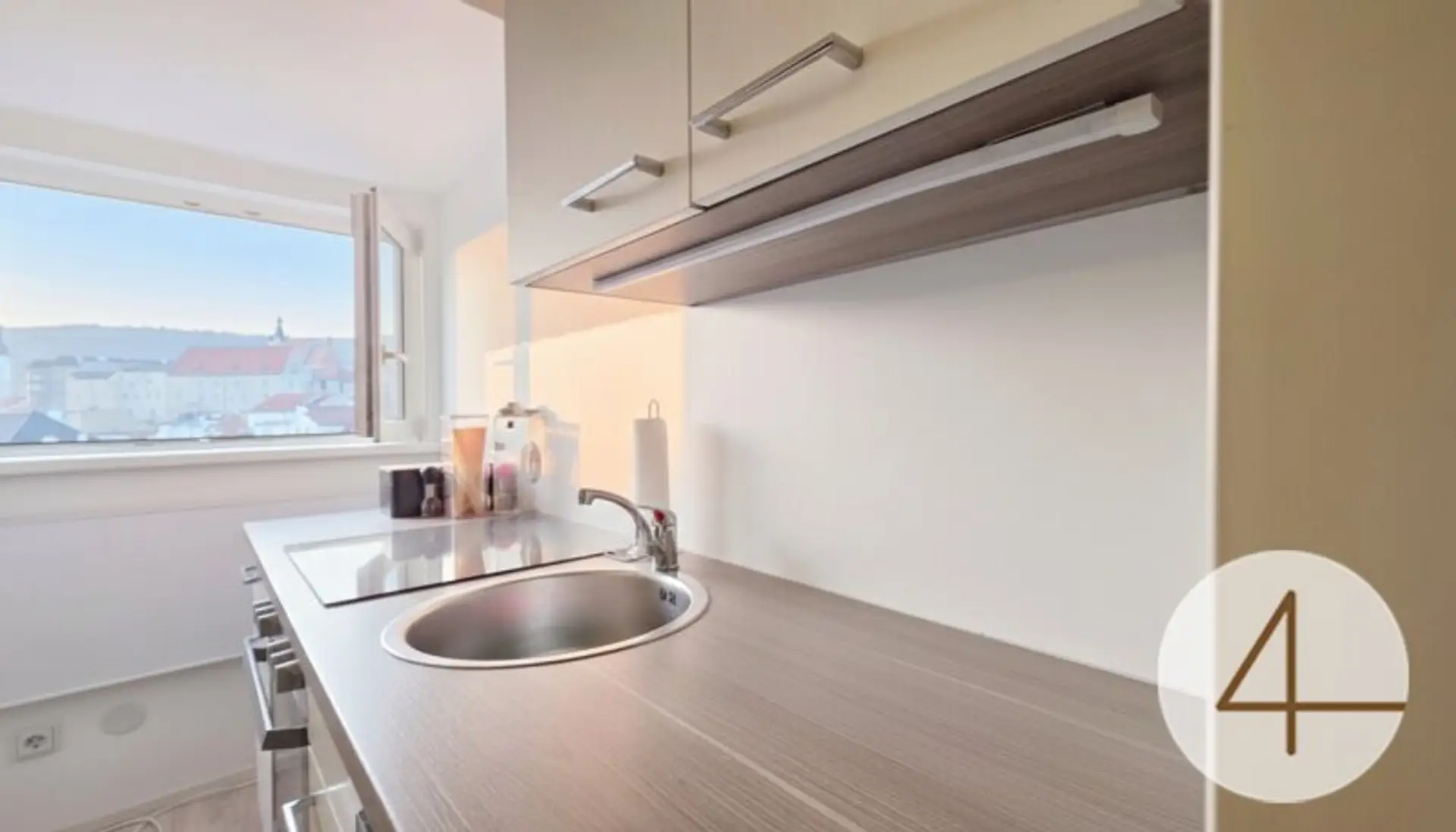 Diese gepflegte Wohnung befindet sich im 4. Obergeschoss ohne Lift eines Wohnhauses in der Drinkweldergasse in Krems und überzeugt mit einem wunderschönen Ausblick auf die Kremser Altstadt.