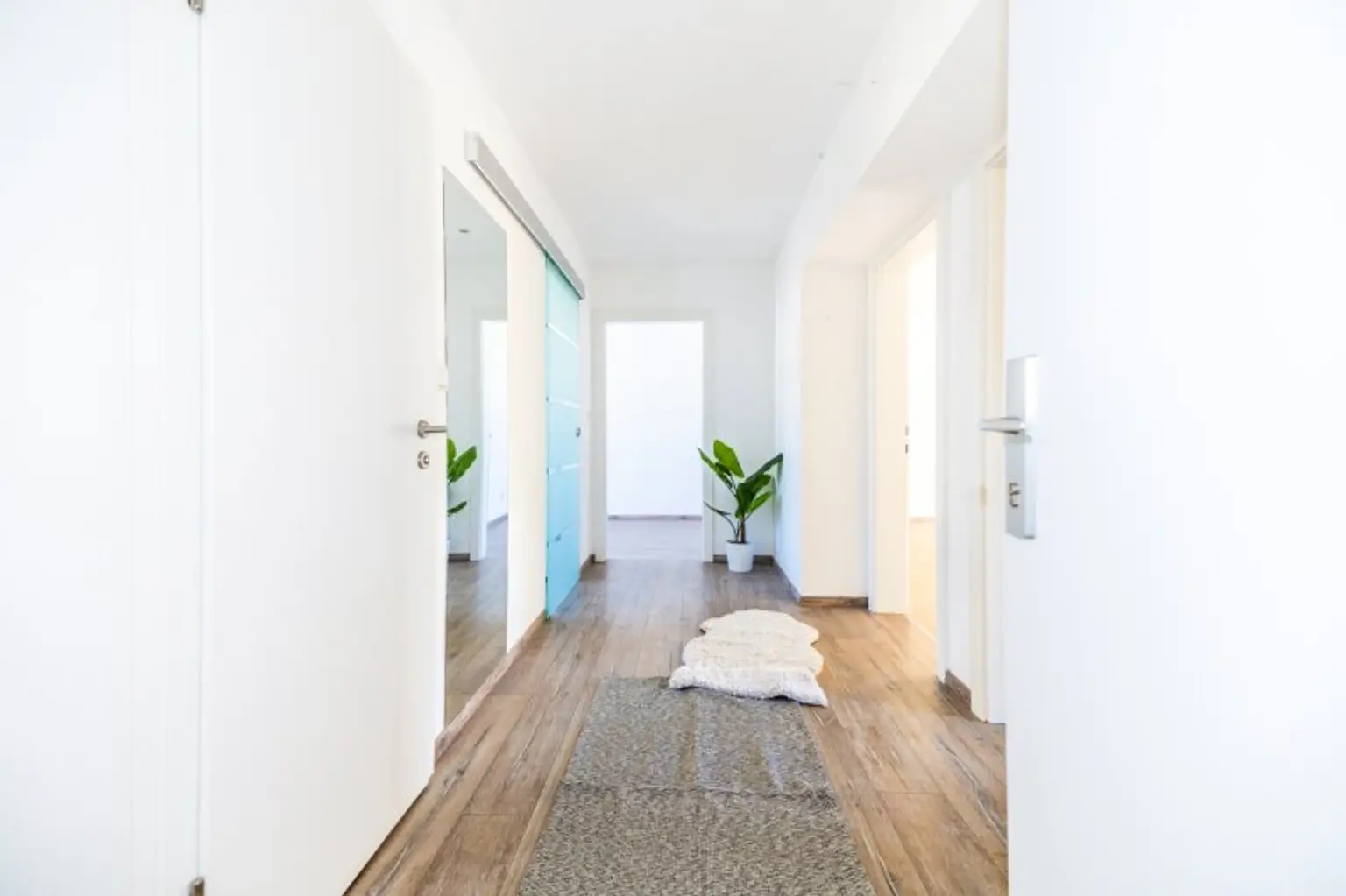 Alle Zimmer sind separat begehbar, was die Wohnung besonders flexibel macht. Sie eignet sich sowohl für Singles als auch für Paare, Familien oder eine Wohngemeinschaft. Das größte Zimmer, das ideal als Wohnzimmer genutzt werden kann, führt direkt auf den sonnigen Balkon. Hier können Sie die Ruhe und die Sonne genießen, da der Balkon komplett in den Innenhof ausgerichtet ist und somit sehr privat und ruhig liegt.