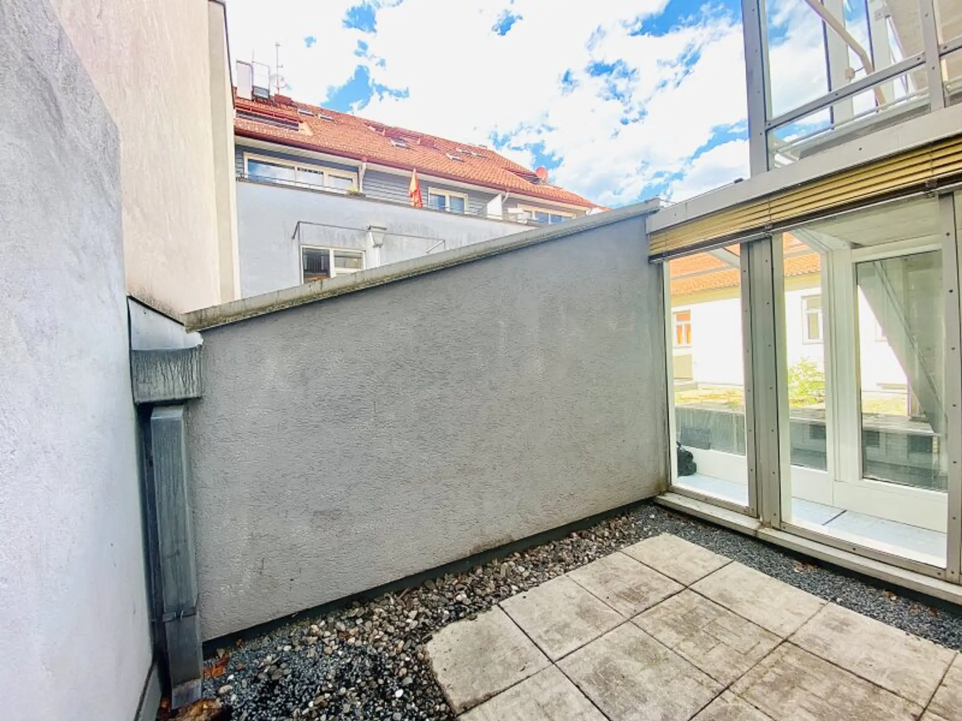 Vom Schlafzimmer aus begehbar – die großzügige, ruhige Terrasse lädt zum Verweilen, Frühstücken oder Entspannen im Freien ein.