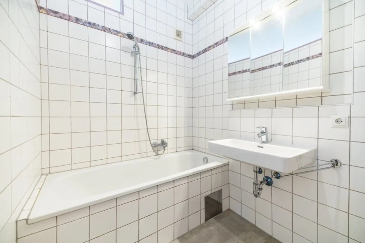 Das Badezimmer ist mit Badewanne, Waschbecken und Waschmaschinenanschluss ausgestattet – die Toilette befindet sich separat und sorgt für zusätzlichen Komfort im Alltag.