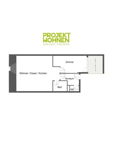 Herzstück der Wohnung ist der offen gestaltete Wohn-/Essbereich mit hochwertiger Inselküche. Der angrenzende Schlafbereich führt direkt auf die ruhige, großzügige Terrasse – Ihr privates Plätzchen im Grünen.