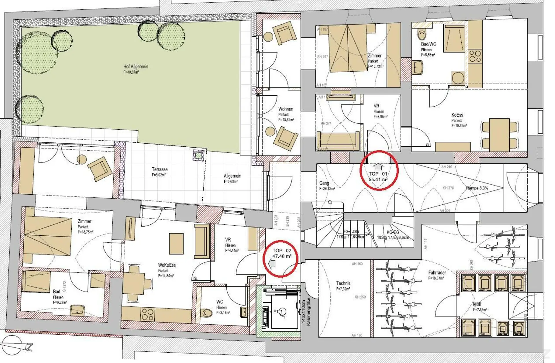 Fußläufig oder mit Rad hat man in wenigen Minuten eine Vielzahl von Einkaufsmöglichkeiten; auch Ärzte, Apotheken, Banken, Kindergärten, Schulen, Sportstätten uvm. befinden sich in der unmittelbaren Umgebung.