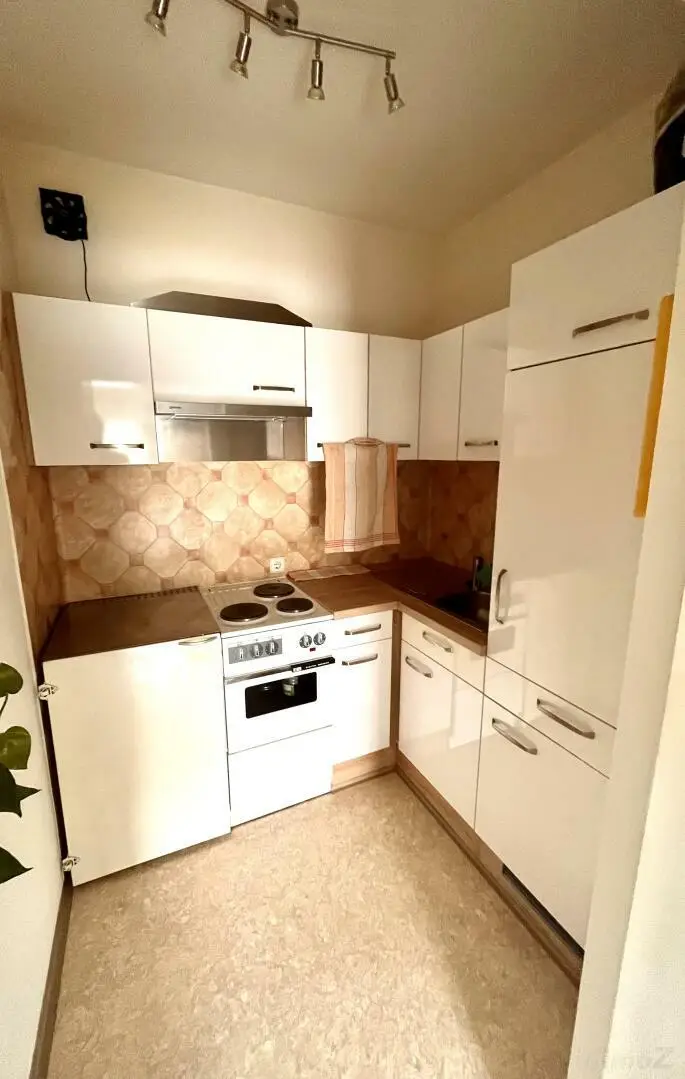 geräumiger Vorraum, Wohn-Essraum mit Zugang zur Loggia und in den Wohn-Schlafraum, Küche möbliert, Bad mit Wanne und WC. Abstellraum im Stiegenhaus + Keller