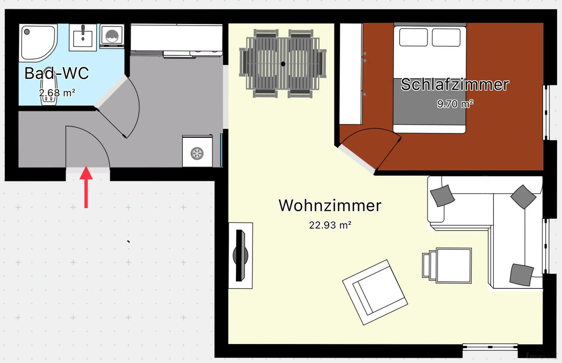 Vorraum, Dusch-Bad mit WC, Küche, Wohnzimmer, kleines Schlafzimmer. Ein Kellerabteil ist im Mietzins inkludiert. Die Beheizung erfolgt mit Fernwärme.