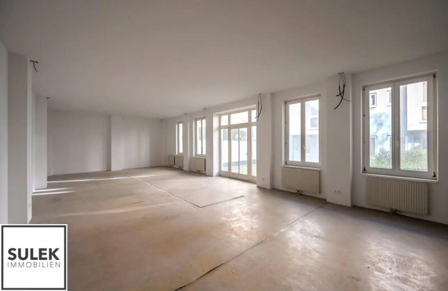 Aufgrund der großen Straßenfront und der guten Belichtung lässt sich das Objekt als hell und ruhig (da teilweise in den Innenhof gelegen) beschreiben. Die Gewerbefläche kann als Shop, Praxis, Kunstzentrum, Büro / Atelier-/Studiogemeinschaft, Einzelhandel etc. genutzt werden.