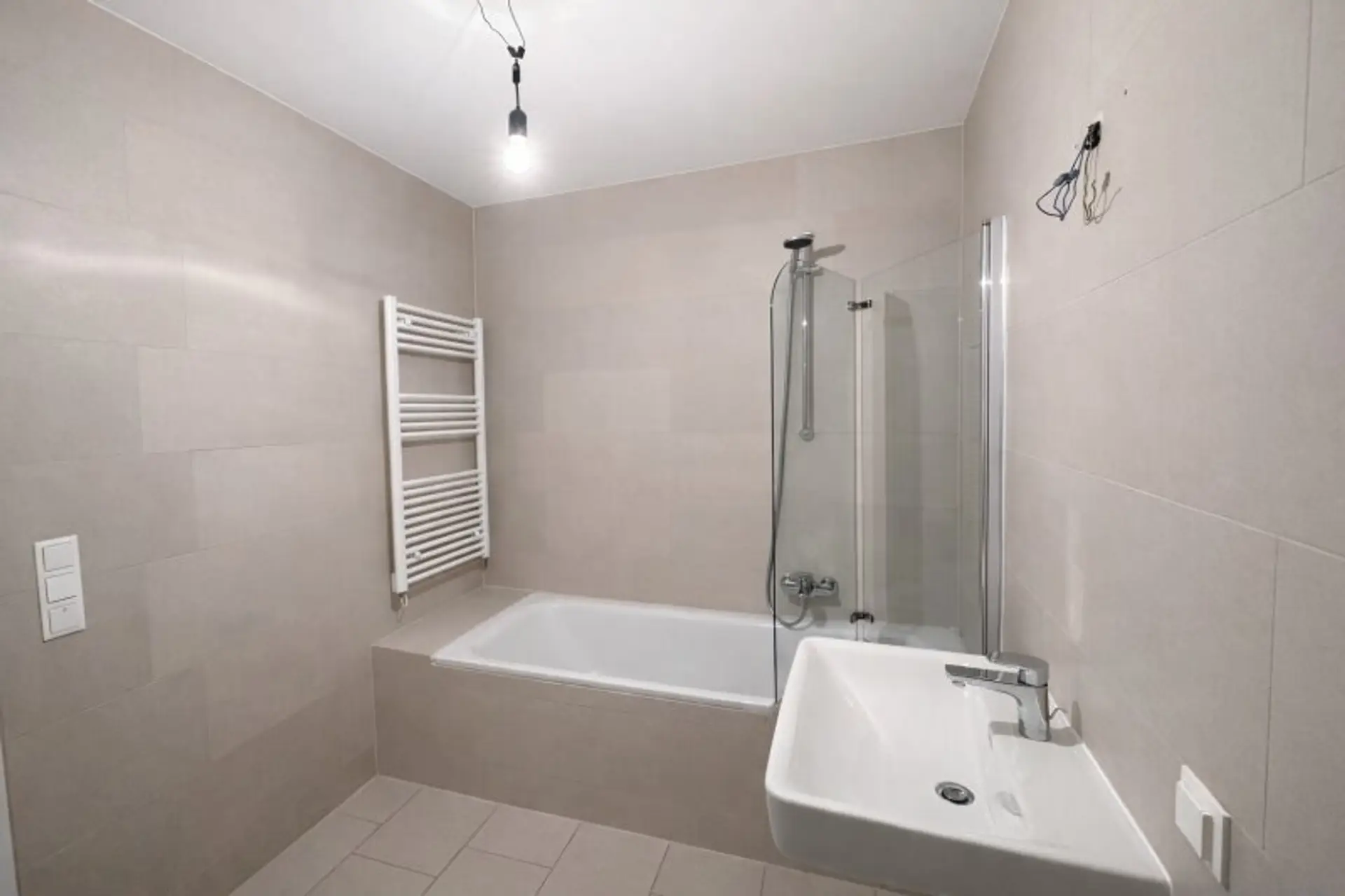 * Badezimmer mit Badewanne und Waschmaschinenanschluss