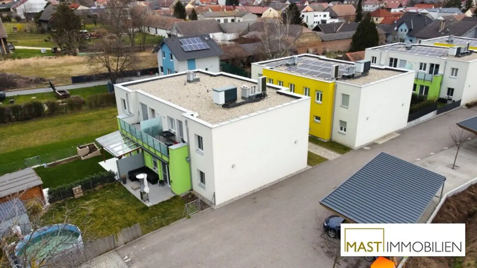 Die erst im Jahr 2017/2018 errichtete Liegenschaft befindet sich in Harmannsdorf - Rückersdorf auf der Laaer Straße 17 und ist technisch als auch optisch in einem sehr gepflegten und neuwertigen Zustand.