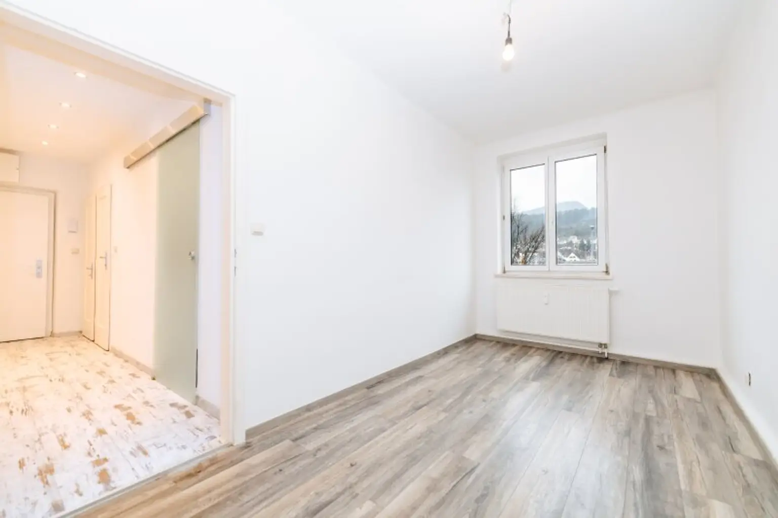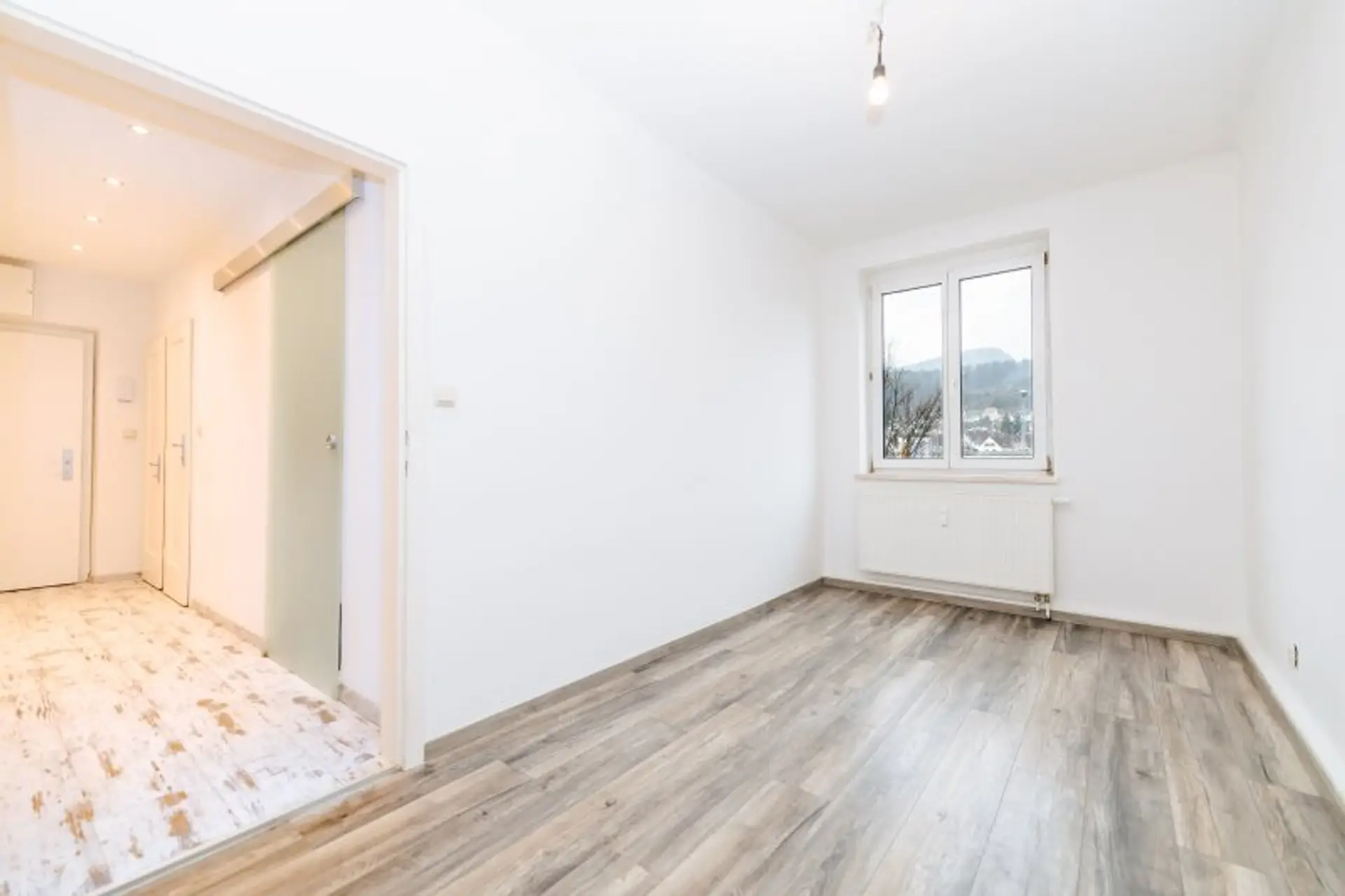 Willkommen in Ihrem neuen Zuhause in der Wiener Straße 76 in 8605 Kapfenberg, wo moderner Wohnkomfort auf eine unschlagbare Lage trifft. Diese traumhafte 56 m² große Mietwohnung im ersten Stock einer gepflegten Anlage verbindet elegantes Design mit Funktionalität. Schon beim Betreten des Vorraums, der mit modernen Decken-Spots und einem ansprechenden Bodenbelag begeistert, spüren Sie die hochwertige Atmosphäre, die sich durch die gesamte Wohnung zieht.