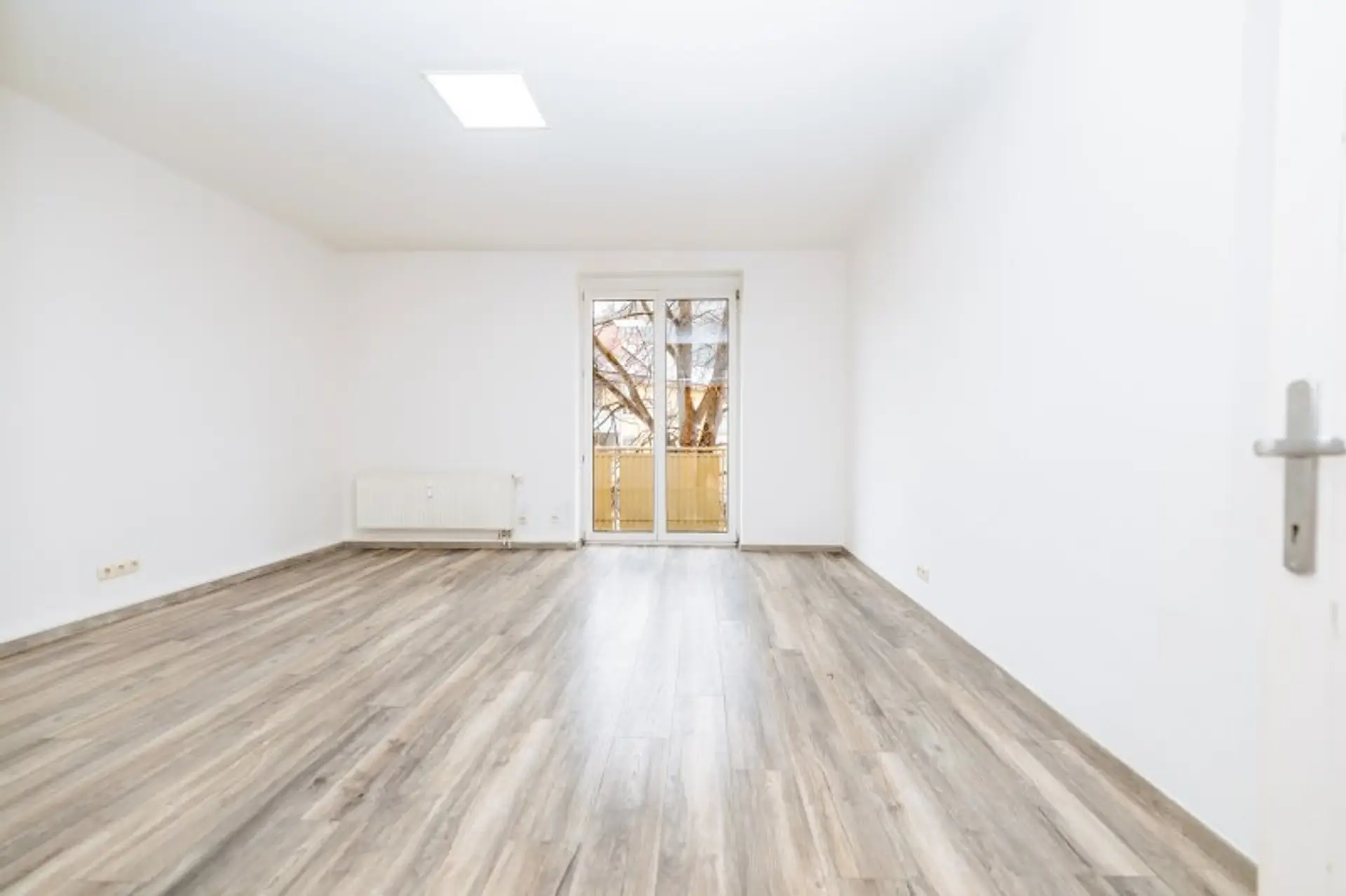 * Lichtdurchflutetes Wohnzimmer: Großzügig geschnitten mit Zugang zum innenhofseitigen, südwestlich ausgerichteten Balkon für entspannte Stunden im Freien.