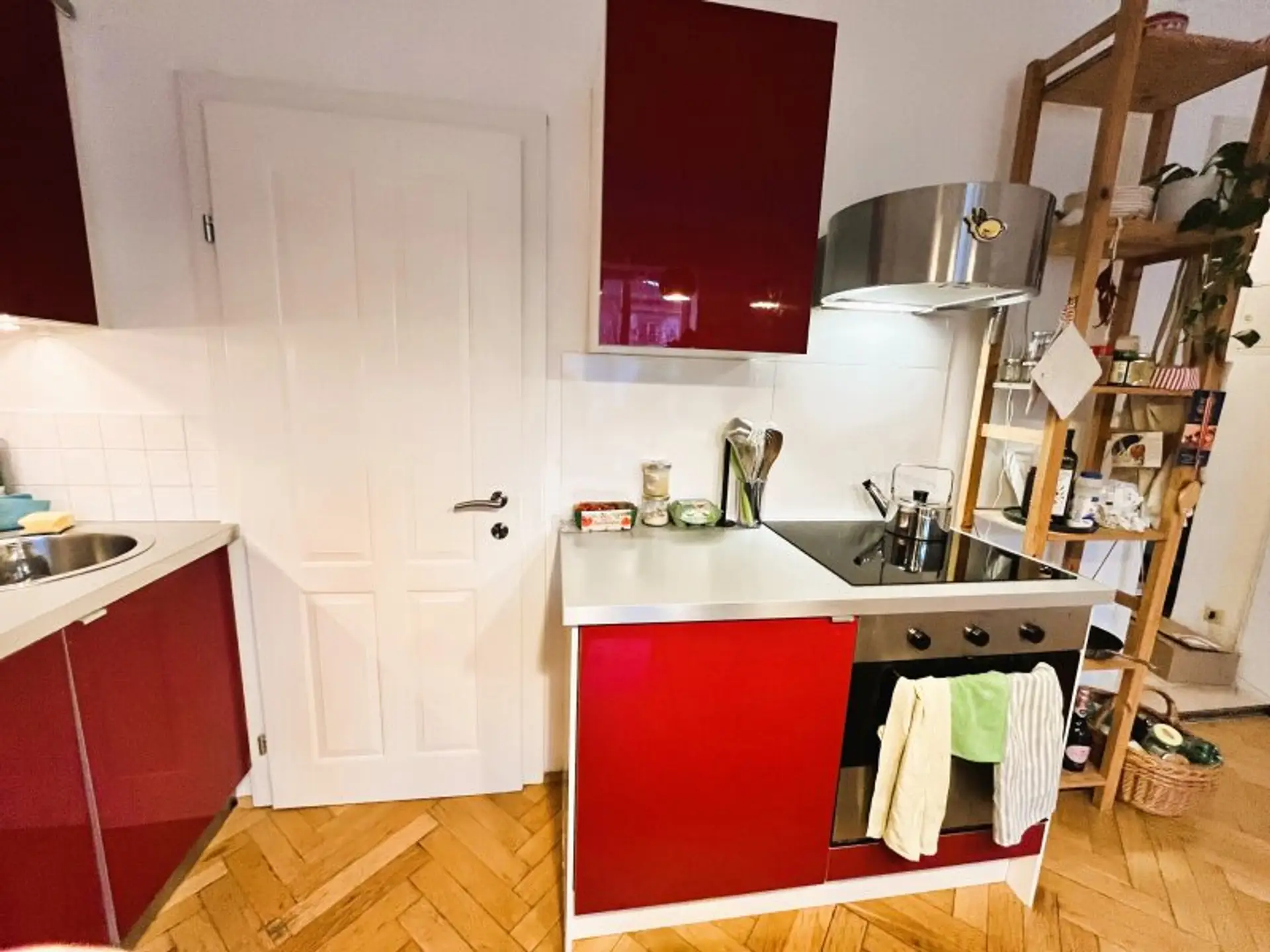 Die Böden bestehen aus hochwertigem Fisch-Grätparkett aus Echtholz und passen hervorragend zu den stilvollen Innentüren aus Massiv-Holz in Kassetten-Optik, welche der hellen 2-Zimmerwohnung diesen exklusiven Charme verleihen. Zudem gibt es noch ein gepflegtes Badezimmer mit Dusche, WC und Waschmaschinen-Anschluss sowie eine praktische Küche mit Geschirrspüler, Kühlschrank, Backofen und Herd. Neben dem Vorzimmer und den großzügig geschnittenen Zimmern gibt es noch ein ca. 14m² großes Kellerabteil als zusätzlichen Stauraum.