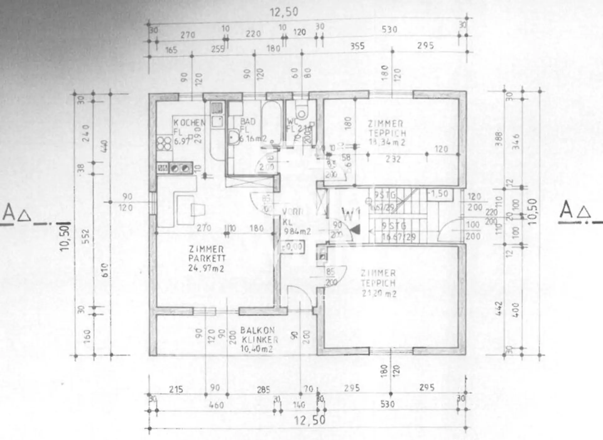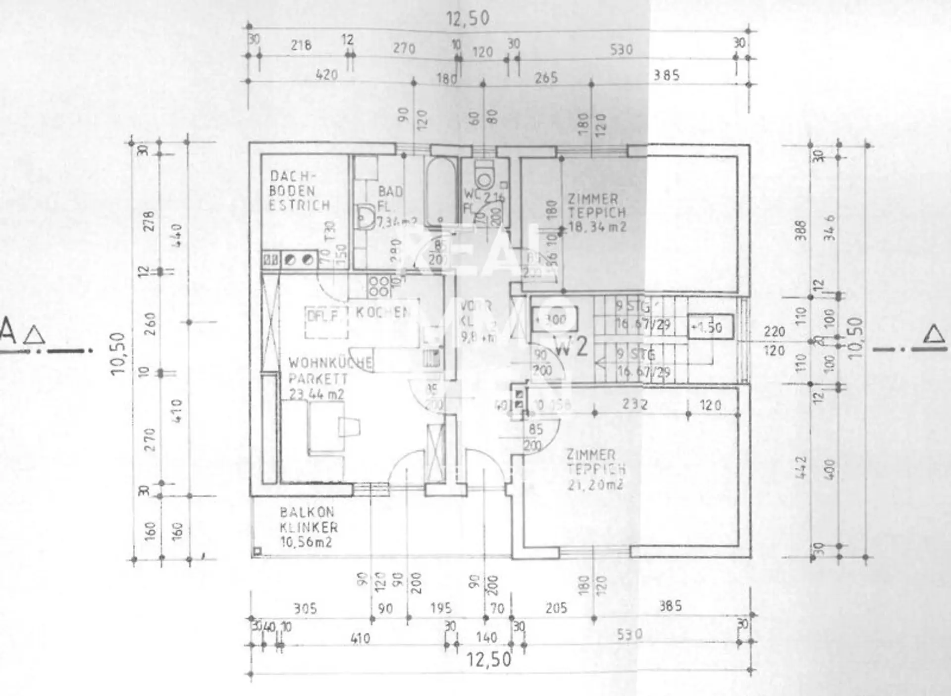 • Dachgeschoss: Drei Zimmer, Wohnküche, Bad, WC, Abstellraum, Balkon – es fehlen Zargen und Innentüren, diverse Ausbauarbeiten erforderlich.