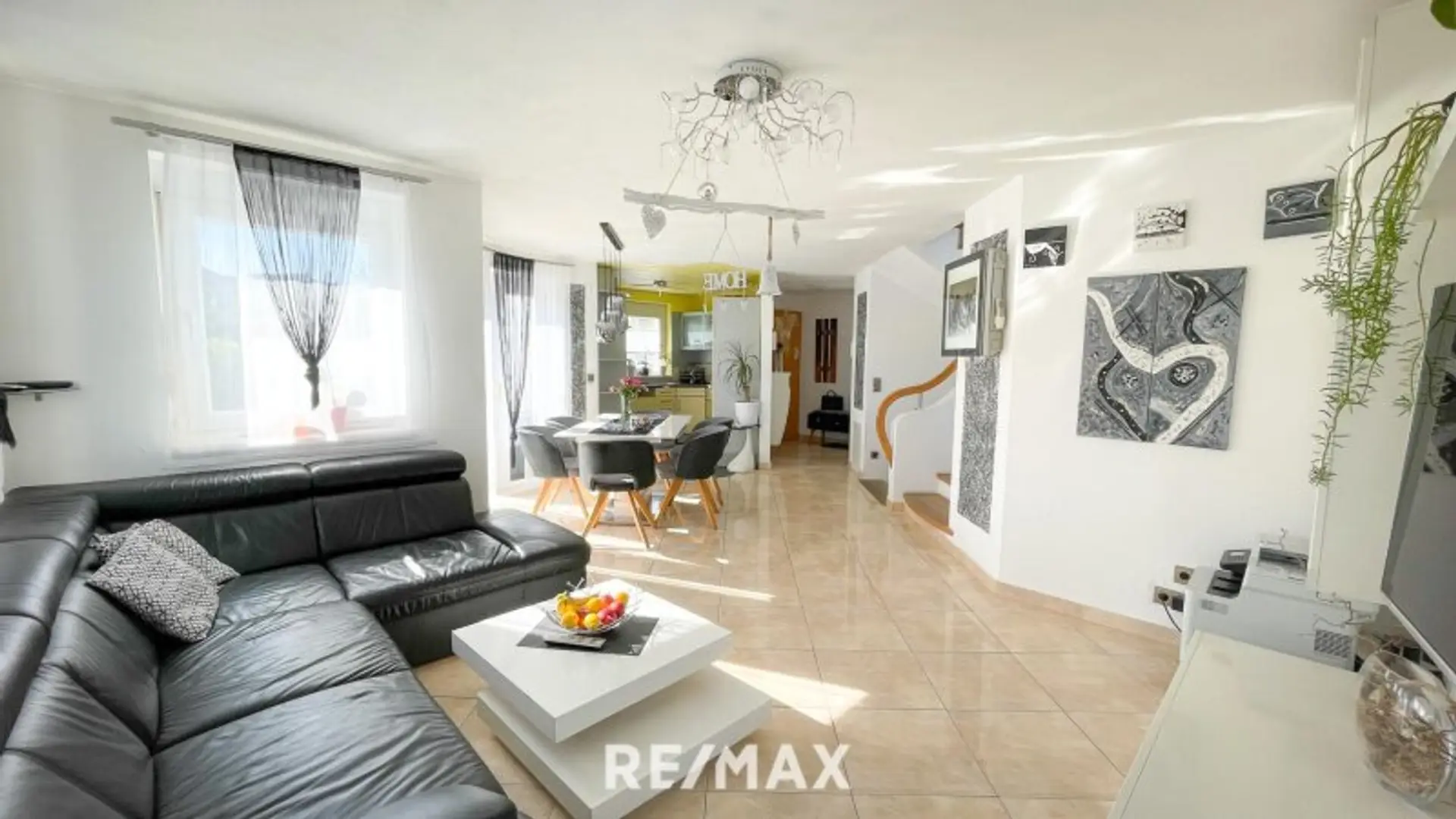 großer Wohn-Essraum (ca. 29 m²) mit Ausgang auf die Terrasse mit Gartenblick