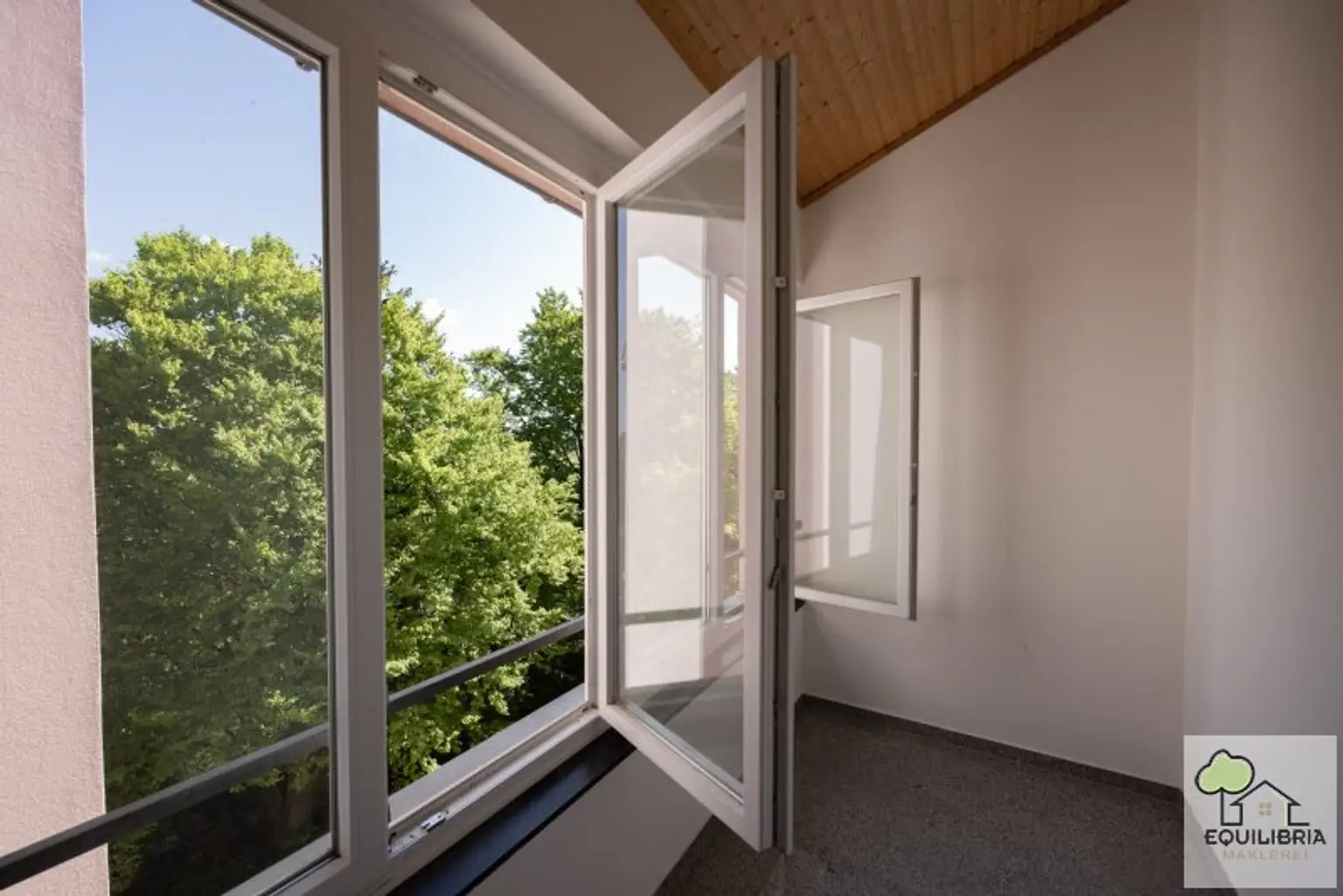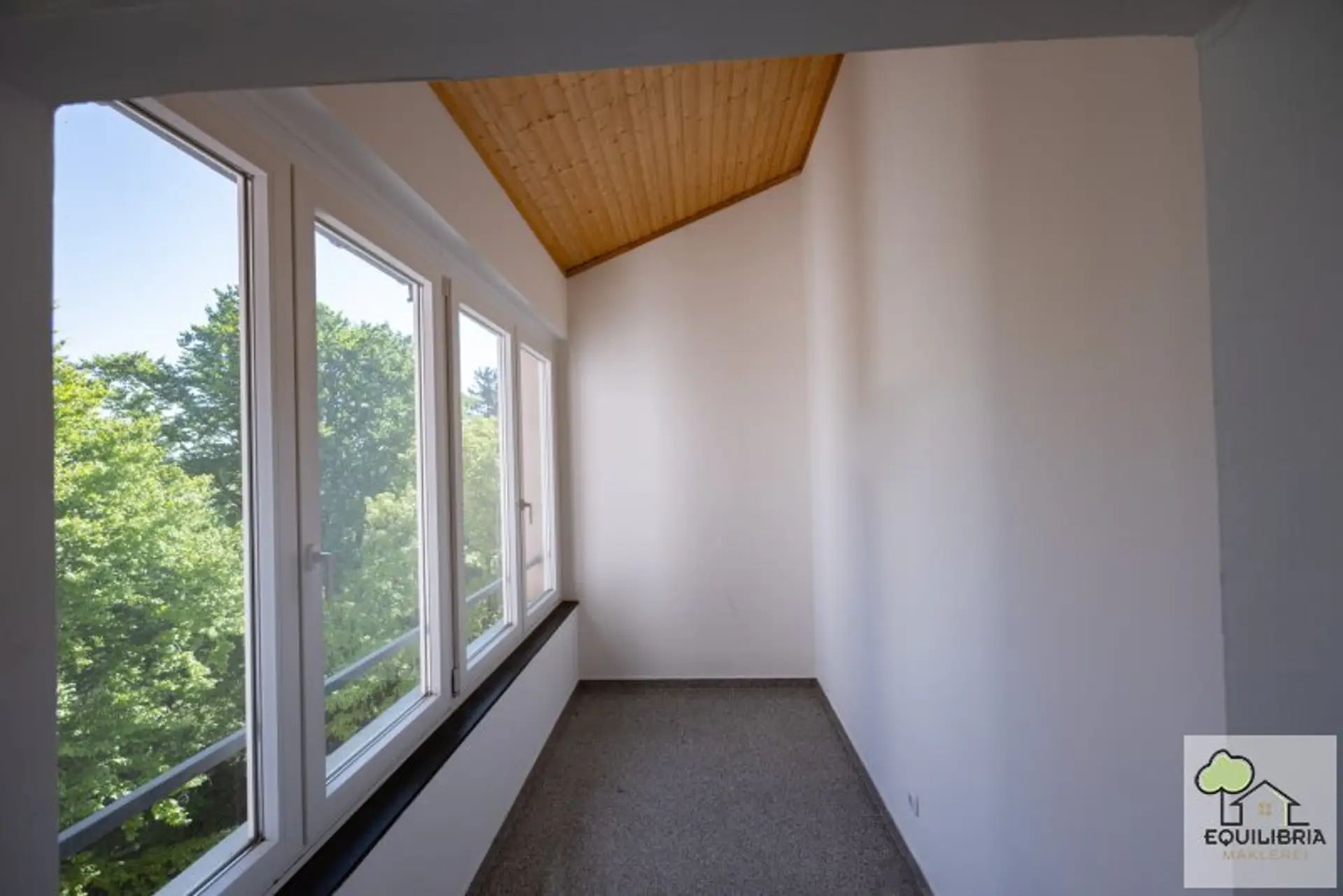 Die verglaste Loggia erweitert den Wohnraum und kann ganzjährig genutzt werden – ideal zum Entspannen mit Blick ins Grüne.