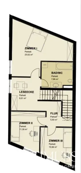Die gemauerte Treppe führt Sie in den privaten Bereich des Hauses. Ihr neues Master-Bedroom mit über 23 m² bietet Ihnen eine Oase der Ruhe. Das stilvolle Badezimmer mit Badewanne und separater Toilette lädt zu entspannten Momenten ein. Zwei weitere großzügige Schlafzimmer sowie ein zusätzliches Büro geben Ihnen maximale Gestaltungsfreiheit – ob für Familie, Gäste oder Ihr Home-Office.