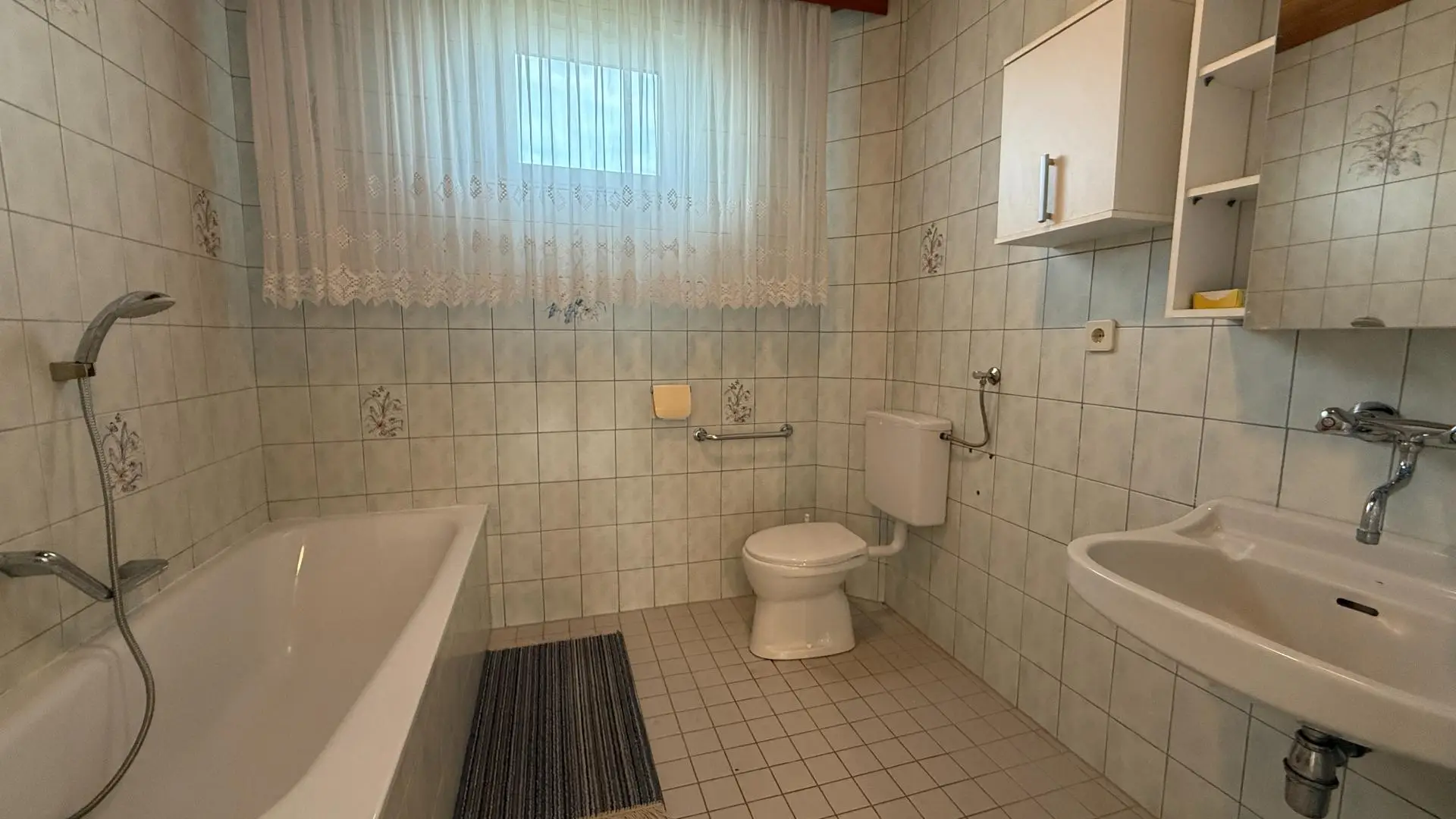 Badezimmer mit Badewanne und Toilette