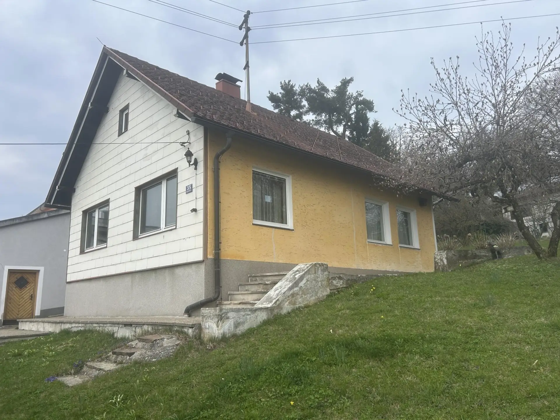 Das Nebengebäude hat einen Wohnraum und mehrere Abstellräume und einen kleinen Keller. Hinter dem Nebengebäude gibt es auch einen geräumigen Abstellraum.