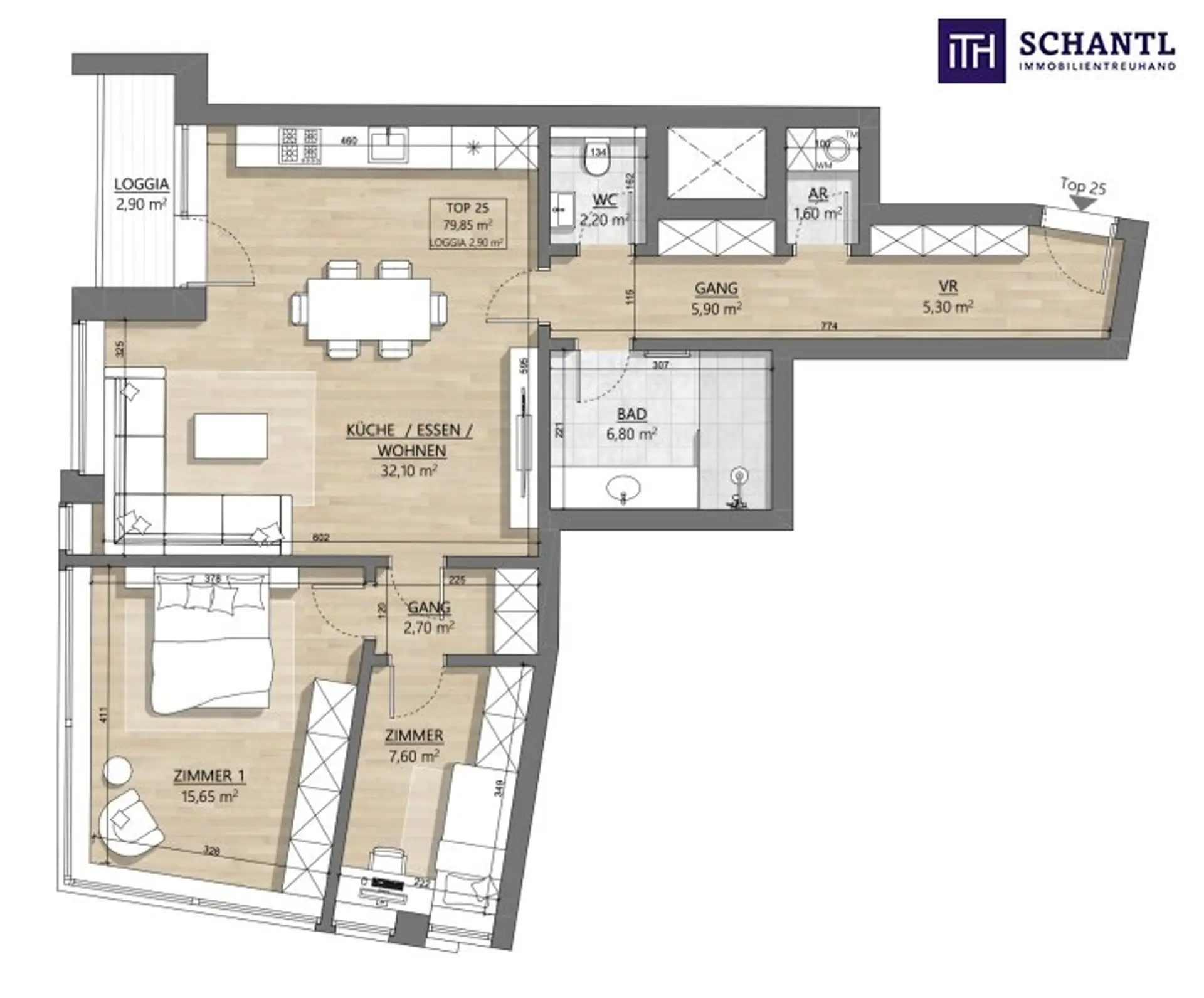 Top 25 – 3-Zimmer-Wohnung mit 4 m² großer Loggia und bester Aussicht!