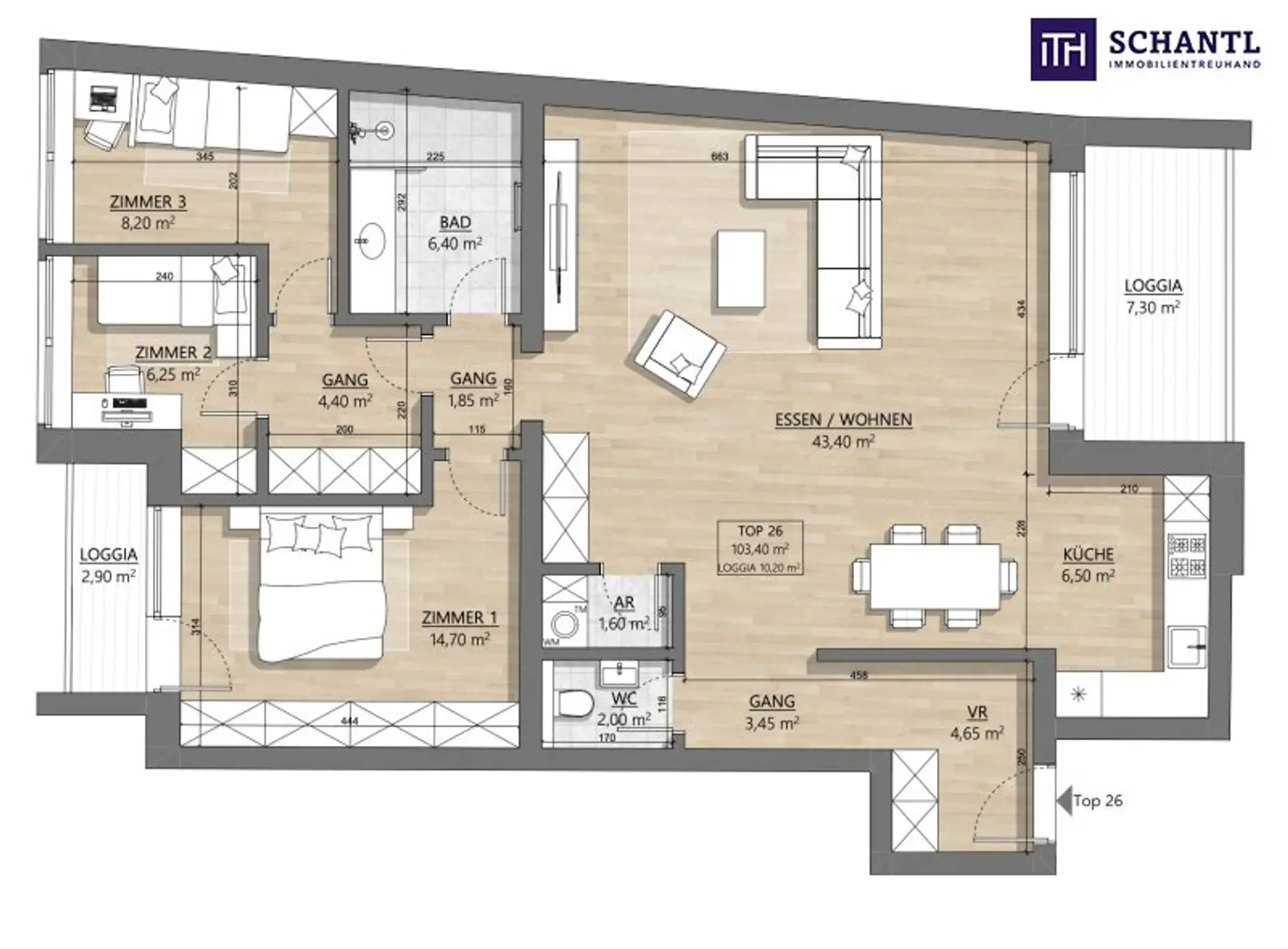 Top 25: Ostwestseitig ausgerichtete 4-Zimmer-Wohnung mit 2 Loggien!