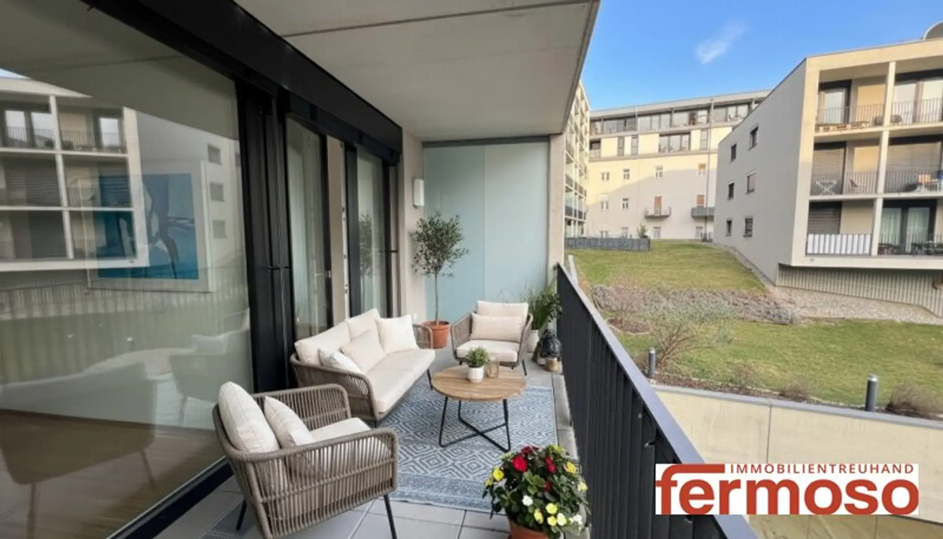 Die Wohnung besticht durch ihre durchdachte Raumaufteilung und die hochwertige Ausstattung. Die Kombination aus Fliesen und Parkett schafft ein stilvolles Ambiente, während die Loggia mit ihrem herrlichen Grünblick der perfekte Ort ist, um den Feierabend zu genießen oder den Tag mit einer Tasse Kaffee zu beginnen. Hier können Sie die Natur hautnah erleben und die Ruhe der Umgebung genießen, ohne auf die Vorzüge der Stadt verzichten zu müssen.