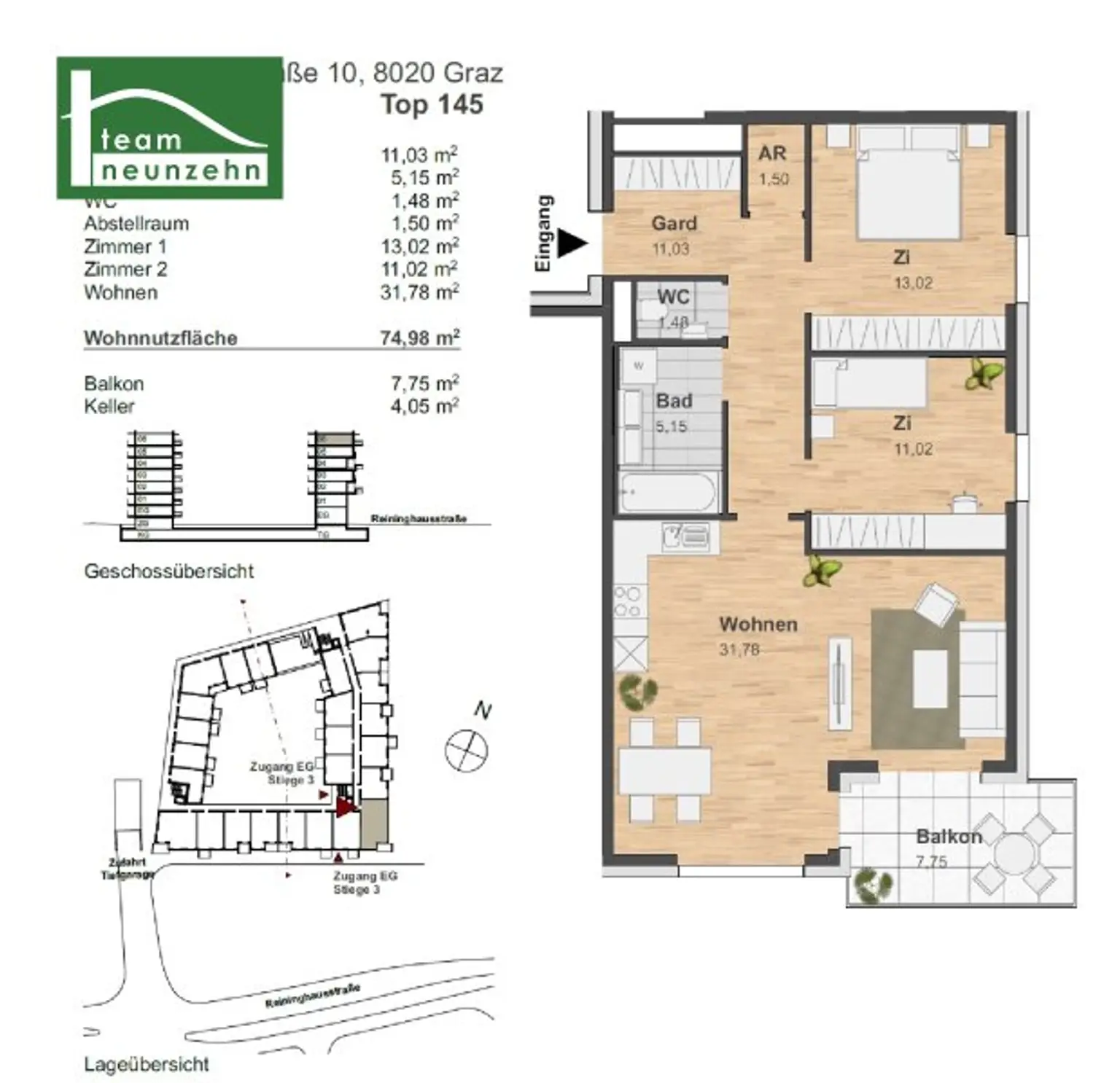 Garagenstellplatz „normal“: € 75,00 / Monat