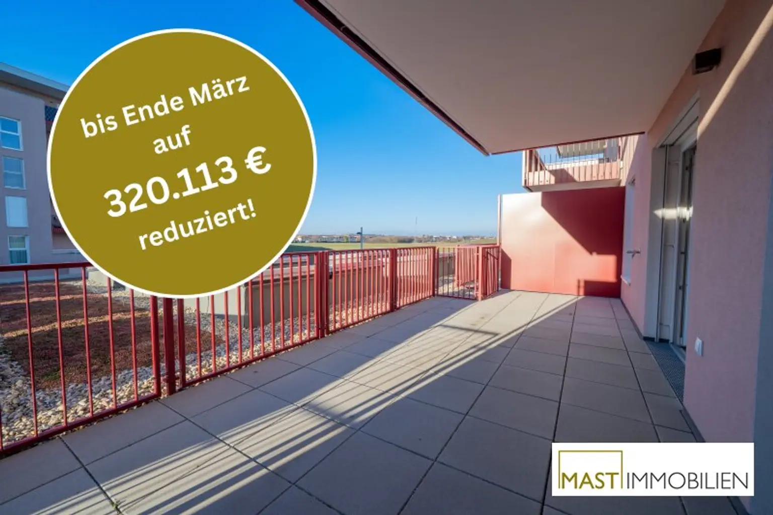 _*Während der Aktion werden die Verkaufspreise um 6,5 % reduziert. Dies entspricht den durchschnittlichen Nebenkosten beim provisionsfreien Wohnungskauf (1,9 % Vertrags-errichtung, 3,5 % Grunderwerbsteuer, 1,1 % Eintragungsgebühr). Die auf Basis des um 6,5% reduzierten Kaufpreises berechneten Nebenkosten sind über den Treuhänder zu begleichen. Eine mögliche Gebührenbefreiung gem. § 25a iVm § 25b Gerichtsgebührengesetz kann zusätzlich in Anspruch genommen werden._