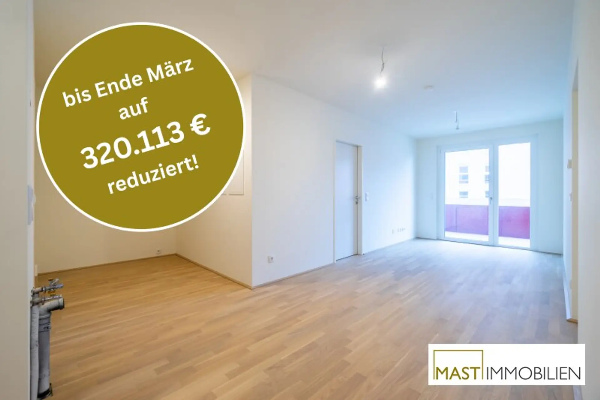 _*Während der Aktion werden die Verkaufspreise um 6,5 % reduziert. Dies entspricht den durchschnittlichen Nebenkosten beim provisionsfreien Wohnungskauf (1,9 % Vertrags-errichtung, 3,5 % Grunderwerbsteuer, 1,1 % Eintragungsgebühr). Die auf Basis des um 6,5% reduzierten Kaufpreises berechneten Nebenkosten sind über den Treuhänder zu begleichen. Eine mögliche Gebührenbefreiung gem. § 25a iVm § 25b Gerichtsgebührengesetz kann zusätzlich in Anspruch genommen werden._