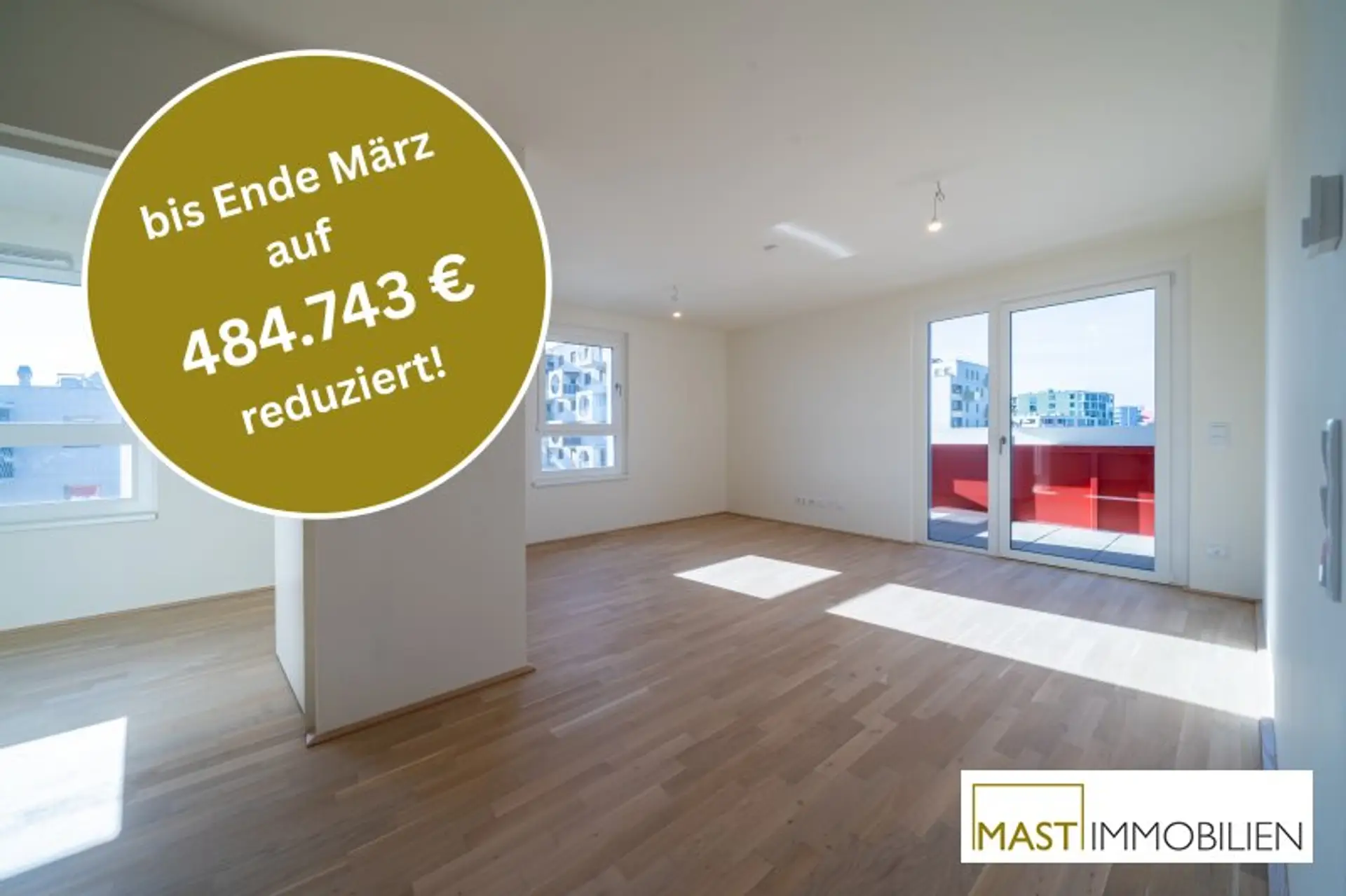 _*Während der Aktion werden die Verkaufspreise um 6,5 % reduziert. Dies entspricht den durchschnittlichen Nebenkosten beim provisionsfreien Wohnungskauf (1,9 % Vertrags-errichtung, 3,5 % Grunderwerbsteuer, 1,1 % Eintragungsgebühr). Die auf Basis des um 6,5% reduzierten Kaufpreises berechneten Nebenkosten sind über den Treuhänder zu begleichen. Eine mögliche Gebührenbefreiung gem. § 25a iVm § 25b Gerichtsgebührengesetz kann zusätzlich in Anspruch genommen werden._