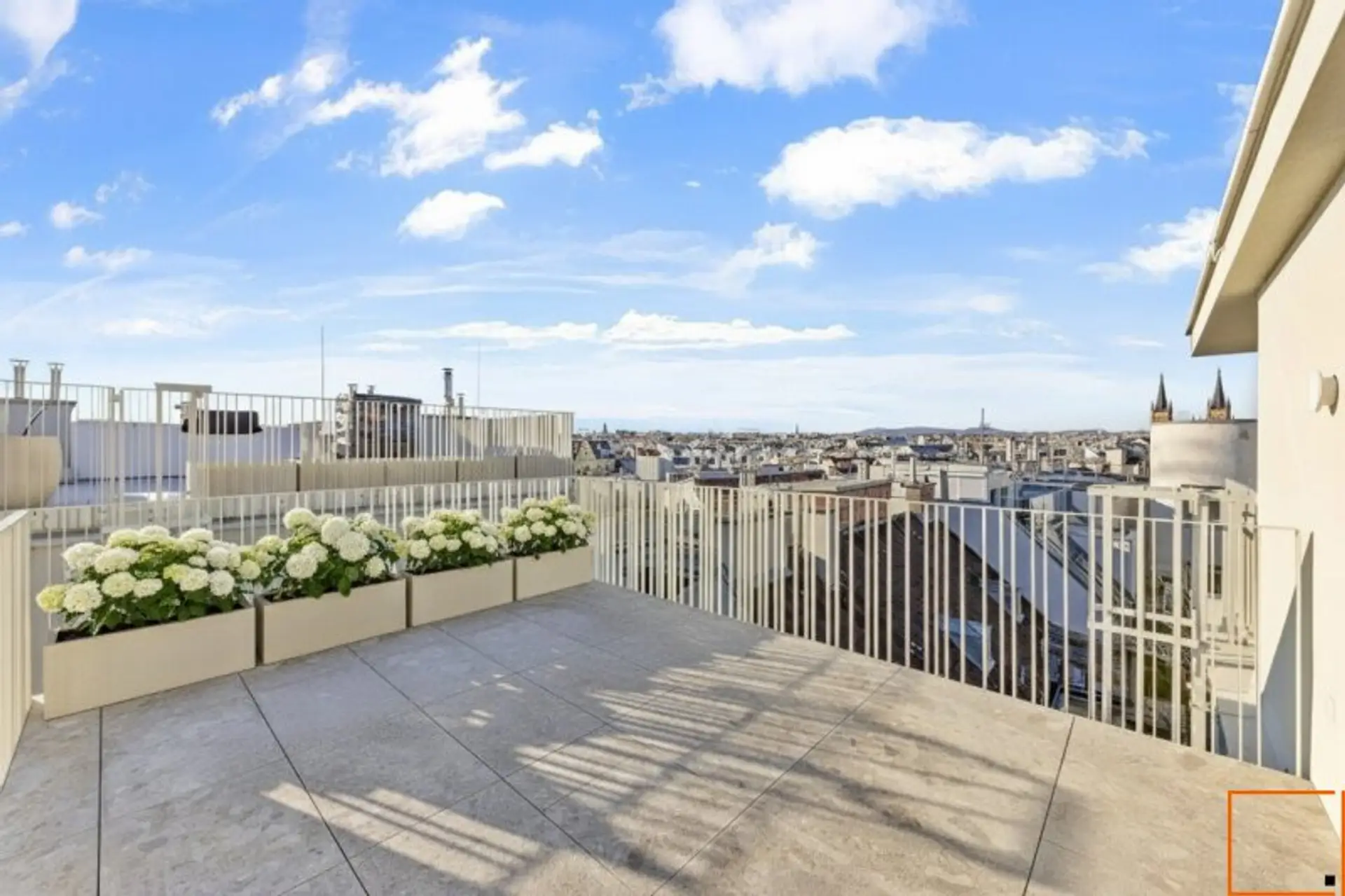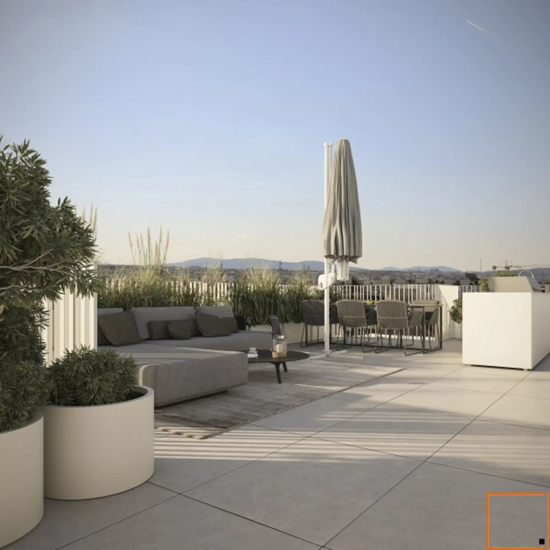 Die vier Penthouses, die auf den vier "MAISONS" zweigeschossig errichtet wurden, sind auf 2 Stiegen verteilt aufgereiht wie Perlen auf einer Schnur. Jedes einzelne der vier Penthouses hat einen sensationellen Weit- und Stadtblick. Die Dachterrassen mit beheizbaren Jacuzzis und Outdoor-Küchen sind das ganze Jahr hindurch eine Erweiterung der Wohnfläche.