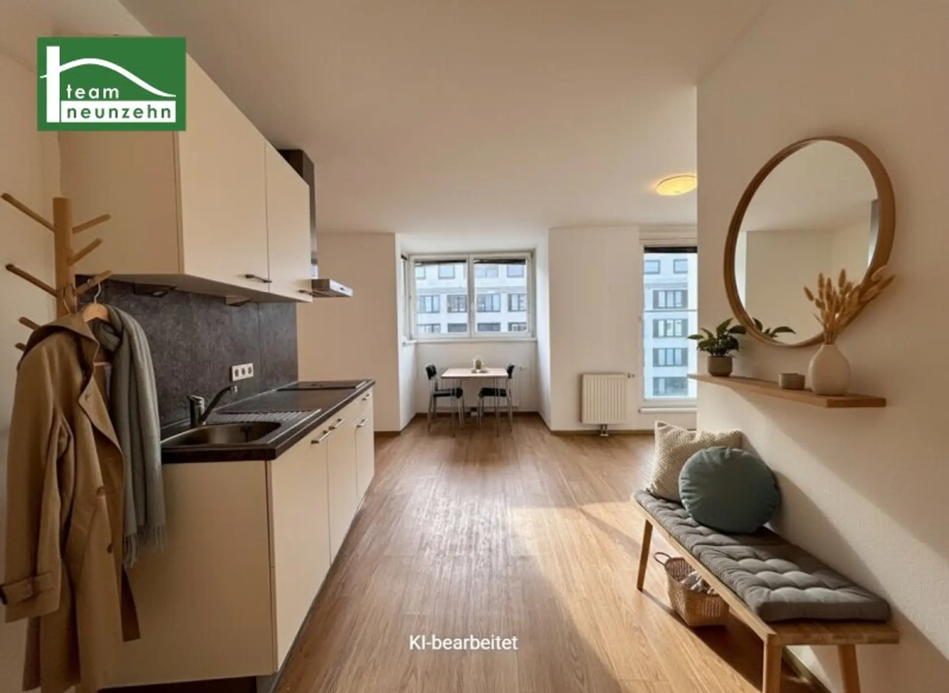 Jede Wohnung verfügt über eine hochwertige Einbauküche mit Kühlschrank, Kochfeld und ausreichend Stauraum. Ein integrierter Abstellbereich mit praktischem Kleiderschrank sorgt für zusätzliche Ordnung und kann ideal als Garderobe genutzt werden. Ein bereits möblierter Essplatz ermöglicht einen unkomplizierten Einzug – perfekt für alle, die sofort starten möchten.