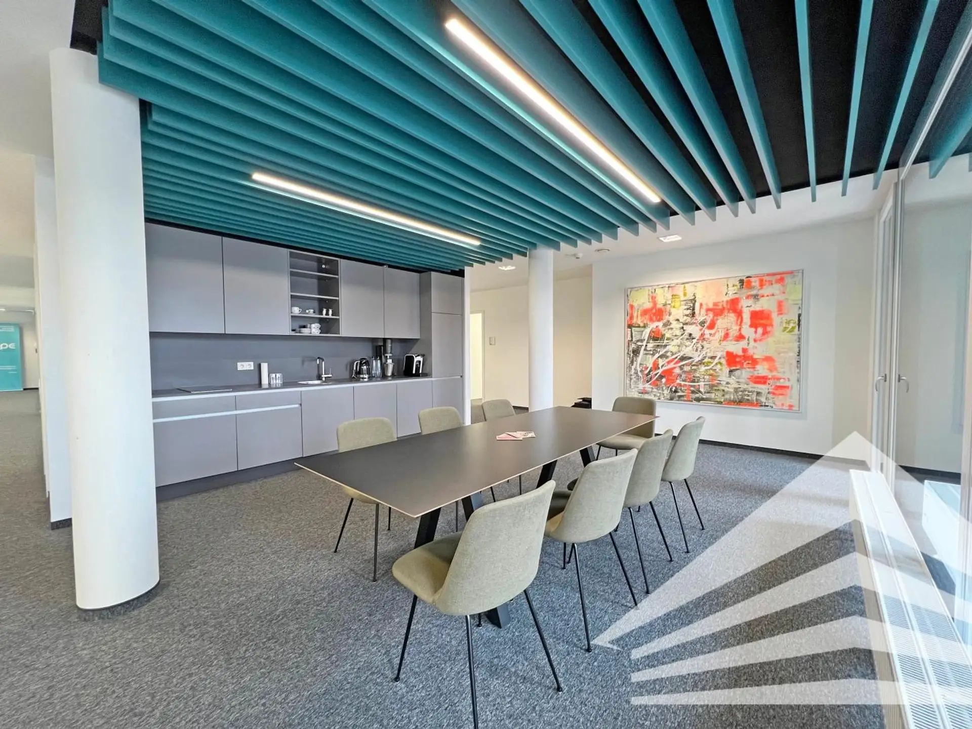 Raumaufteilung: Lounge, Besprechung, Teeküche, Loggia, Dachterrasse