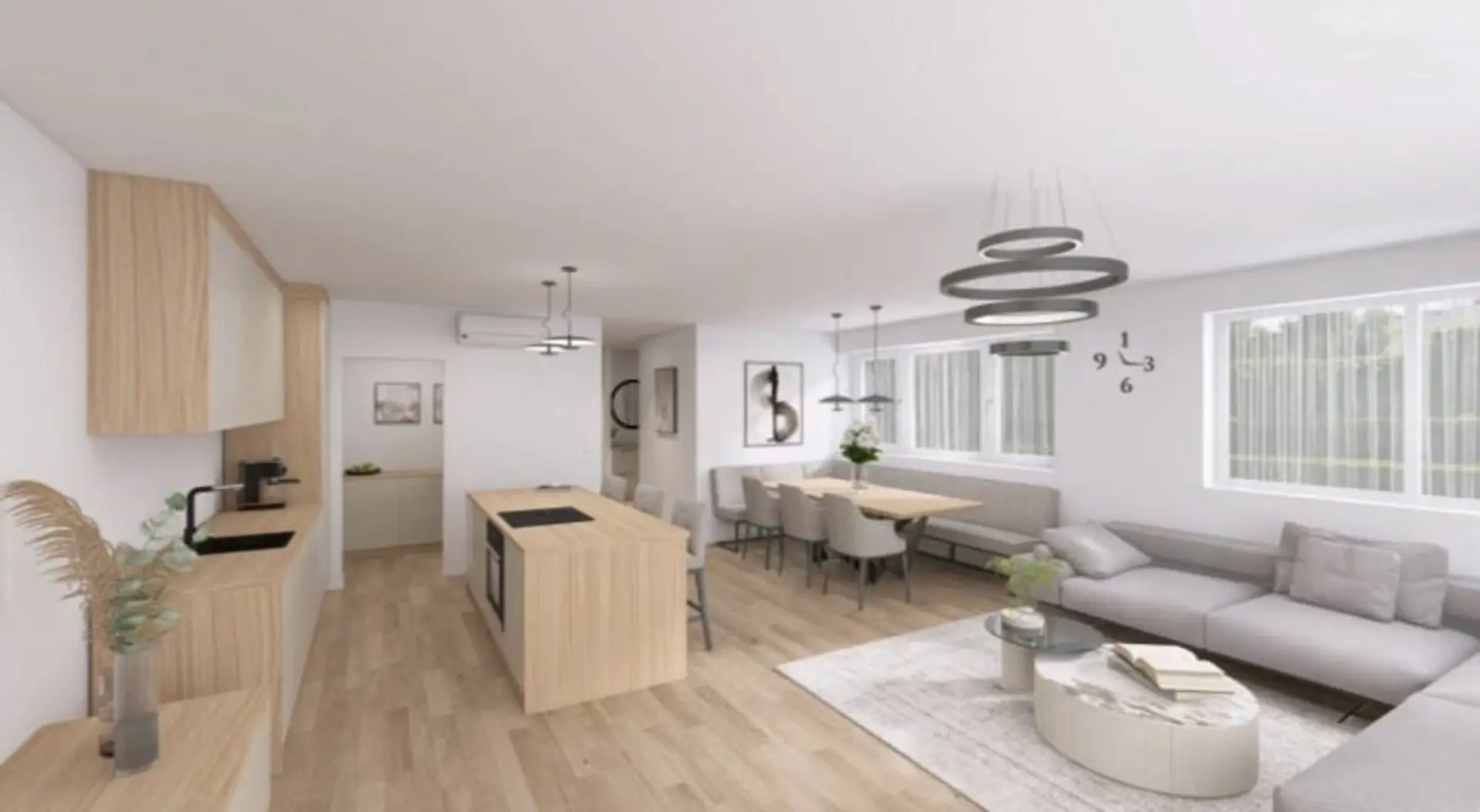 Beide Wohneinheiten, welche sich über zwei Etagen erstrecken und jeweils über 5x lichtdurchflutete Zimmer verfügen, haben eine Wohnfläche von zirka 155 m2. Dazu kommen südseitig ausgerichtete Terrassen und Gärten. Besonders Augenmerk liegt im durchdachten Raumkonzept mit einer Speis bei der Küche und einen begehbaren Schrank im Masterschlafzimmer.