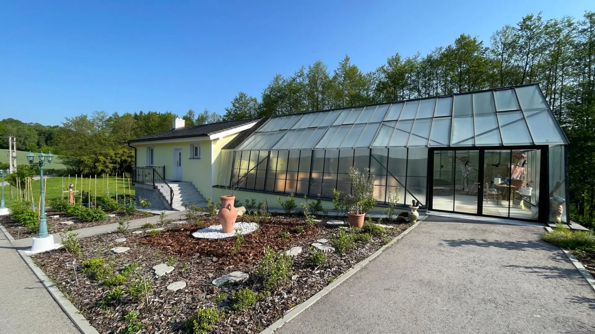 Das Gästehaus mit Glashaus: ca. 53 m² Wfl. + Glashaus ca. 89 m² Nutzfläche
