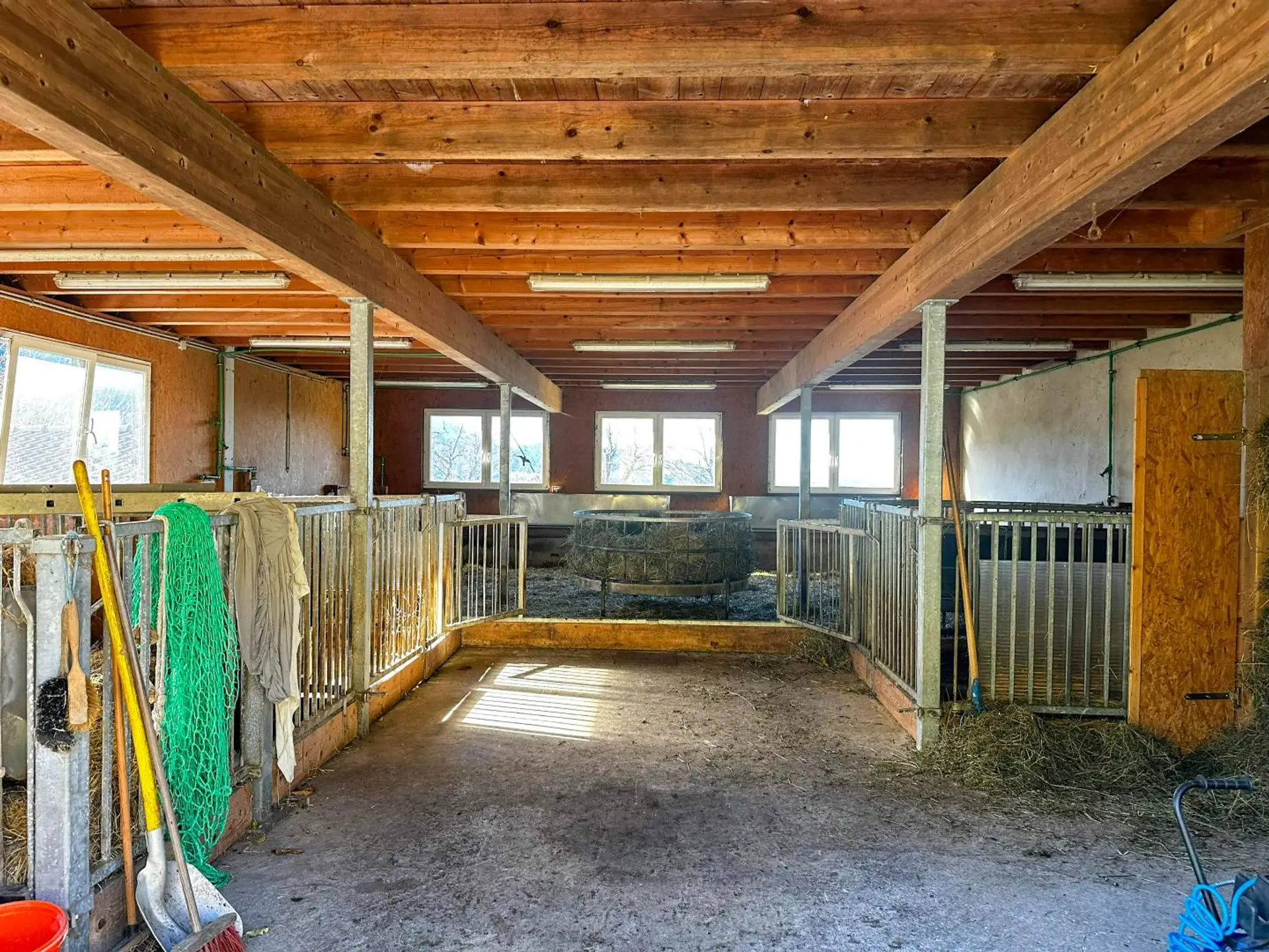 Stall in sehr gutem Zustand mit Freilaufboxen für Schafe und Ziegen (ca. 250 m²) mit einem Keller von 120 m² und einen Heubergeraum im Dachboden.