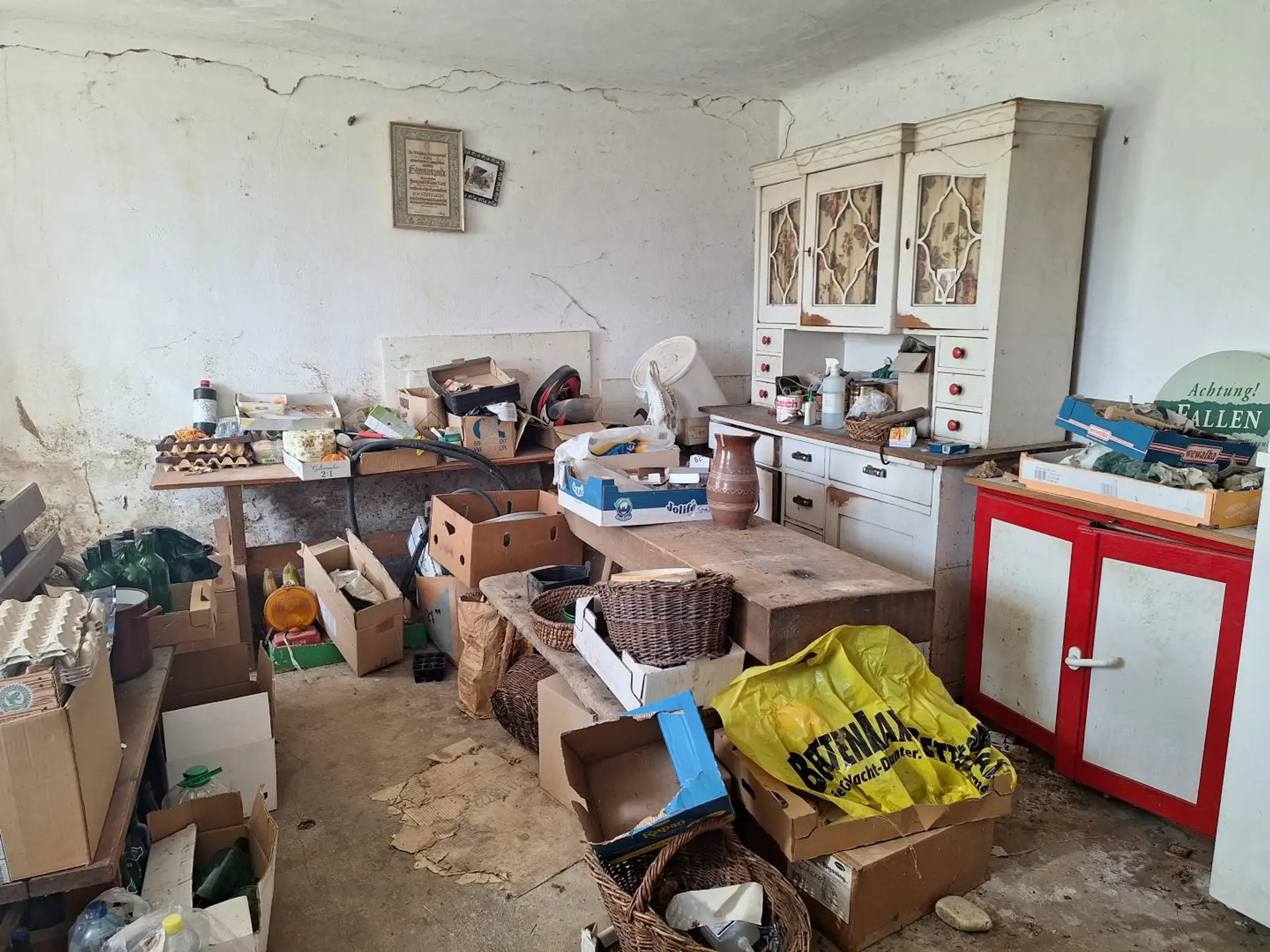 Die gesamte Liegenschaft ist sanierungsbedürftig und wäre am ehesten mit den Attributen puristisch bzw. rudimentär zu beschreiben.