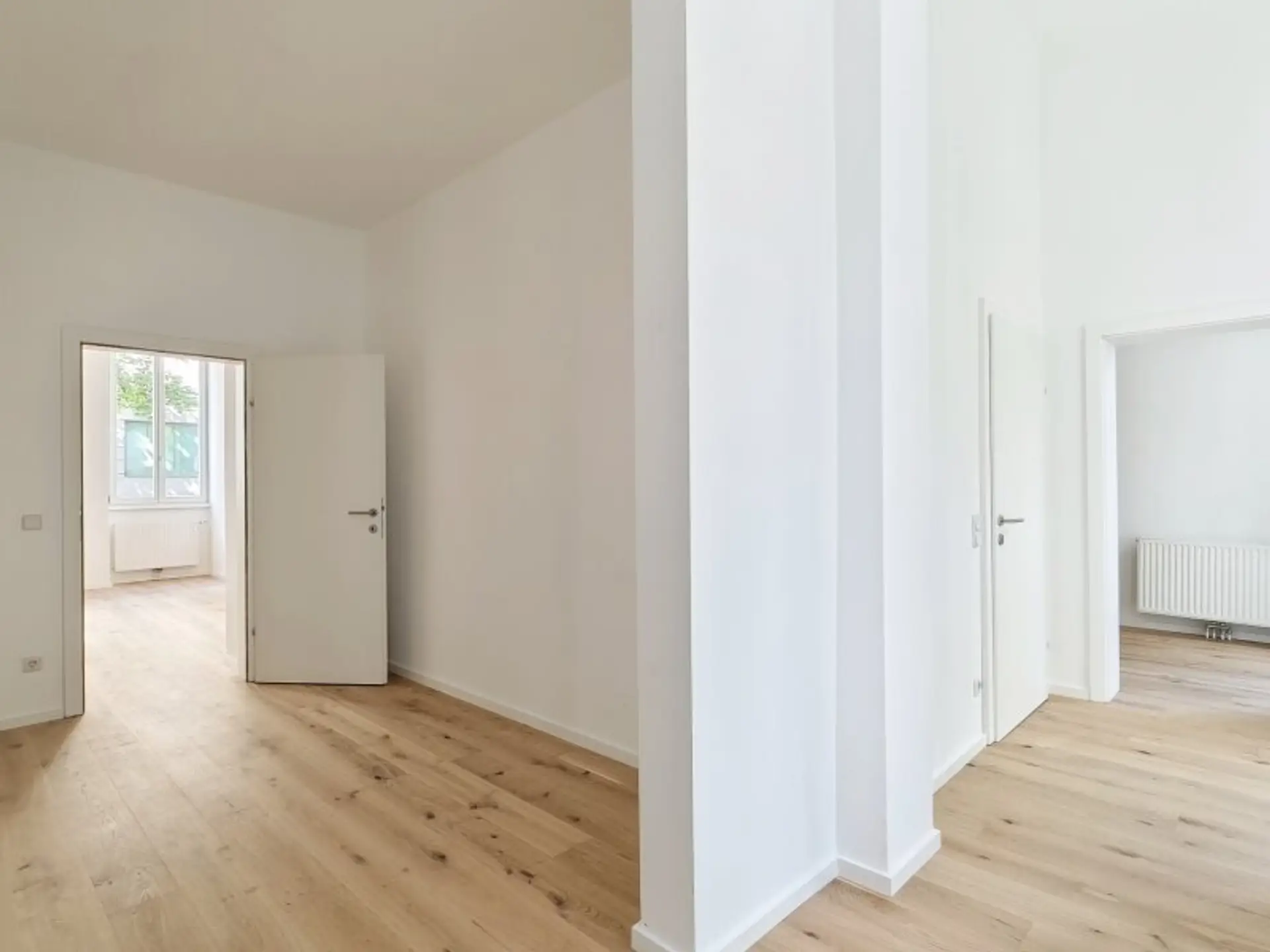 Hier werden Sie sich aber nicht nur draußen, sondern auch drinnen rundum wohlfühlen - überzeugen Sie sich selbst! Das Objekt befindet sich im Erdgeschoss und überzeugt durch einen effizienten Grundriss (ca. 67,48 m²), eine beachtliche Raumhöhe sowie perfekte Lichtverhältnisse zu jeder Tageszeit. Für diese sorgen - trotz der Erdgeschosslage - einerseits die optimale ost-/westseitige Ausrichtung und andererseits die überaus großzügigen Glasflächen, die eine überdurchschnittliche Höhe aufweisen (Fenster: ca. zwei Meter, Terrassentüren: ca. drei Meter). Das großzügige Wohn-/Esszimmer ist straßen-/westseitig ausgerichtet, während alle anderen Räumlichkeiten innenhof-/ostseitig ausgerichtet sind. Die Terrasse mit anschließendem Garten kann einerseits direkt vom Schlafzimmer aus und andererseits zentral vom Vorraum aus erreicht werden. Die separate Küche ist direkt neben dem Wohn-/Esszimmer angesiedelt, idealerweise mit einer raffinierten Glaswand vom lichtdurchfluteten Vorraum getrennt und mit einer gepflegten Einbauküche samt Elektrogeräten der Marke GORENJE ausgestattet. Das geräumige Badezimmer verfügt über eine Badewanne mit praktischer Glasduschwand, einen Einzelwaschtisch, ein WC sowie einen Waschmaschinenanschluss. Der lichtdurchflutete Vorraum wirkt sehr einladend mit direktem Blick in den wunderbaren Garten und bietet ausreichend Platz für praktischen Stauraum. Zudem ist ein geräumiges Kellerabteil (ca. 5,06 m²) zugeordnet. Das Badezimmer ist verfliest, alle anderen Räumlichkeiten sind mit einem wunderschönen Echtholz-Parkettboden ausgestattet.