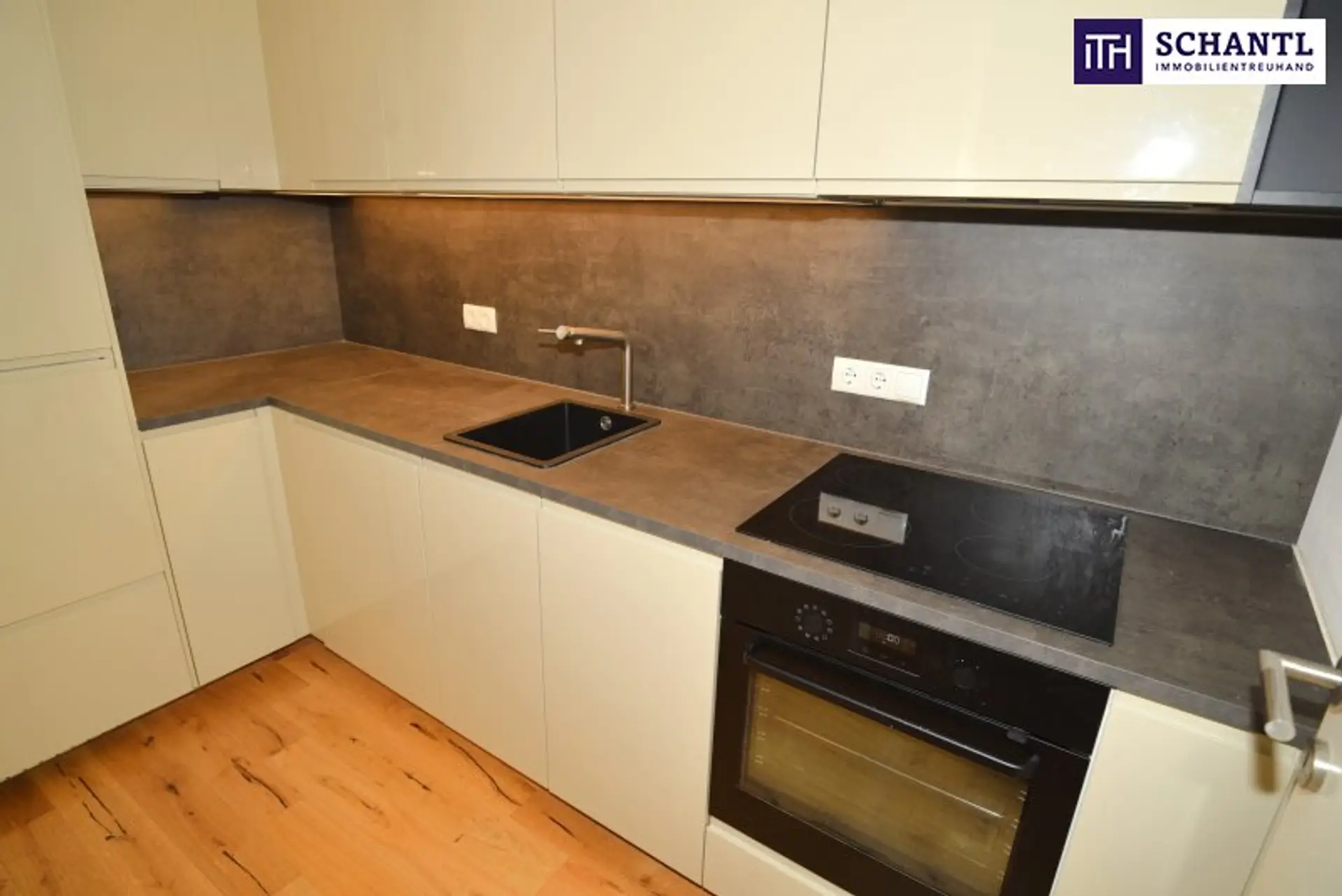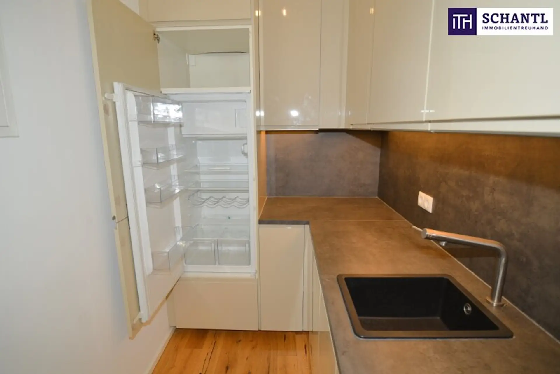 Die Wohnung bietet eine moderne Einbauküche, die bis zur Decke geplant wurde und viel Stauraum schafft. Ein vom Tischler gefertigtes Hochbett mit integriertem Stauraum sorgt für eine clevere und zugleich stilvolle Nutzung des Wohnraums. Besonders einladend ist der direkte Zugang zum ca. 5,9 m² großen Balkon, der zusätzliche Wohnqualität schafft.
