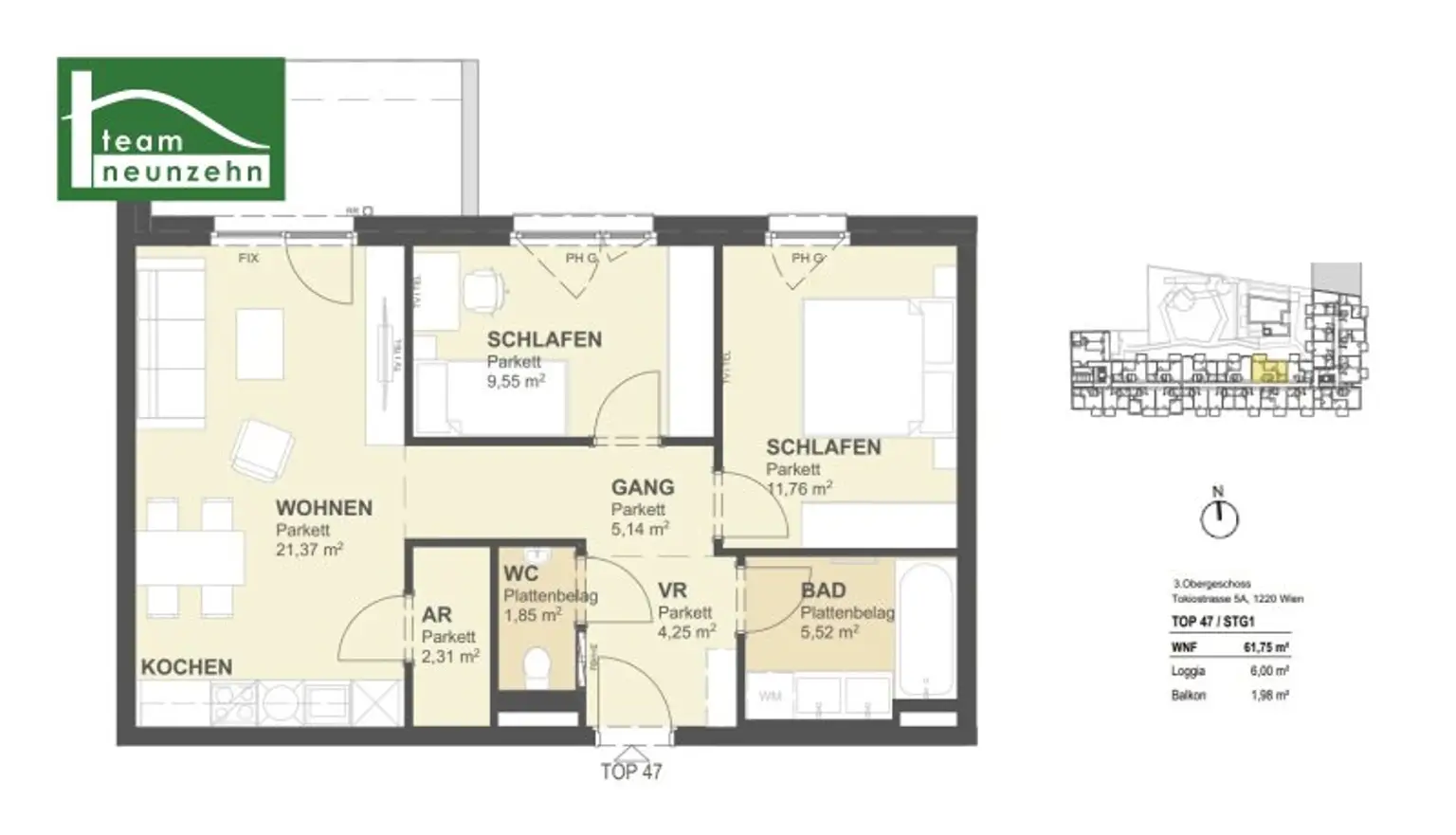 Für Fragen bzw. Besichtigungen steht Ihnen Herr Mag. Christian Leikam sehr gerne unter 0664 88925351 und christian.leikam@teamneunzehn.at zur Verfügung.