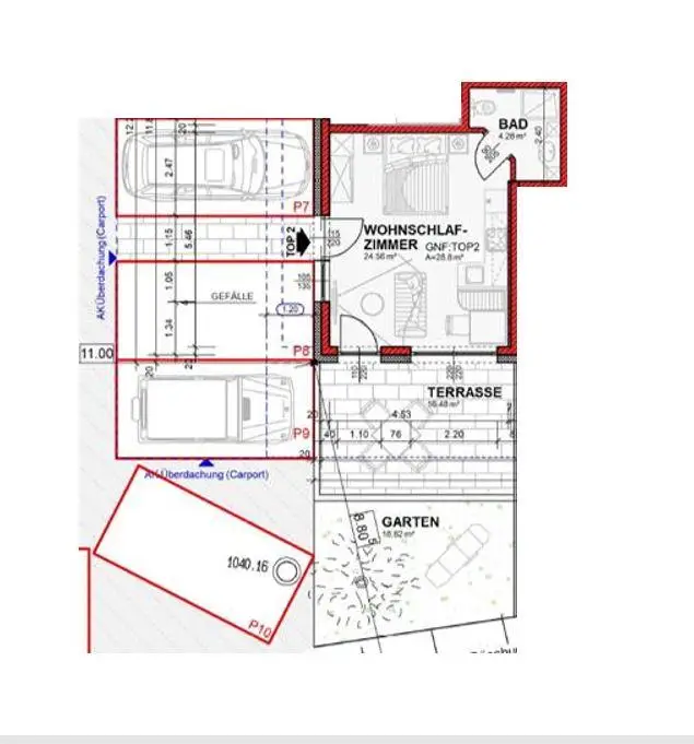 Bei allen Wohnungen kann ein Carportparkplatz erworben werden. Fertigstellung Frühjahr 2027.