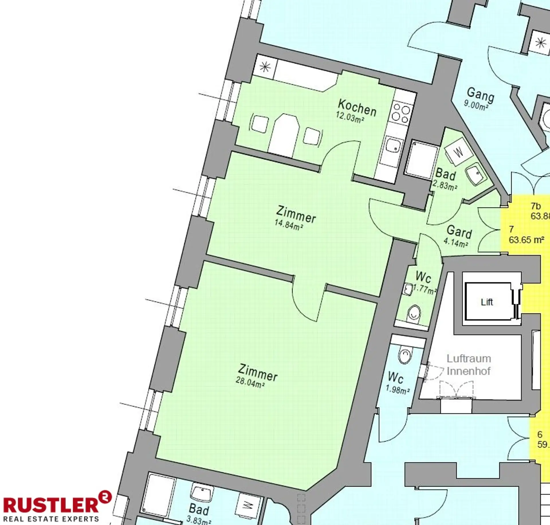 Die Bruttomiete setzt sich zusammen aus: Hauptmietzins, Betriebskosten und Umsatzsteuer. Heizkosten und Energiekosten sind nicht enthalten.