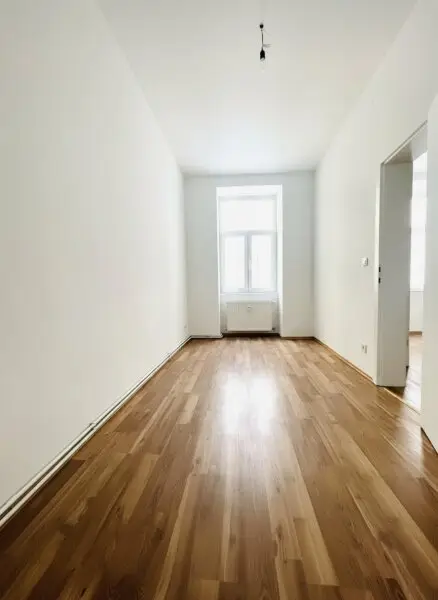 Sie betreten die Wohnung durch das helle Vorzimmer mit großen 3-teiligen Fenster, von dem aus gelangen Sie direkt in die Küche und dem Badezimmer.