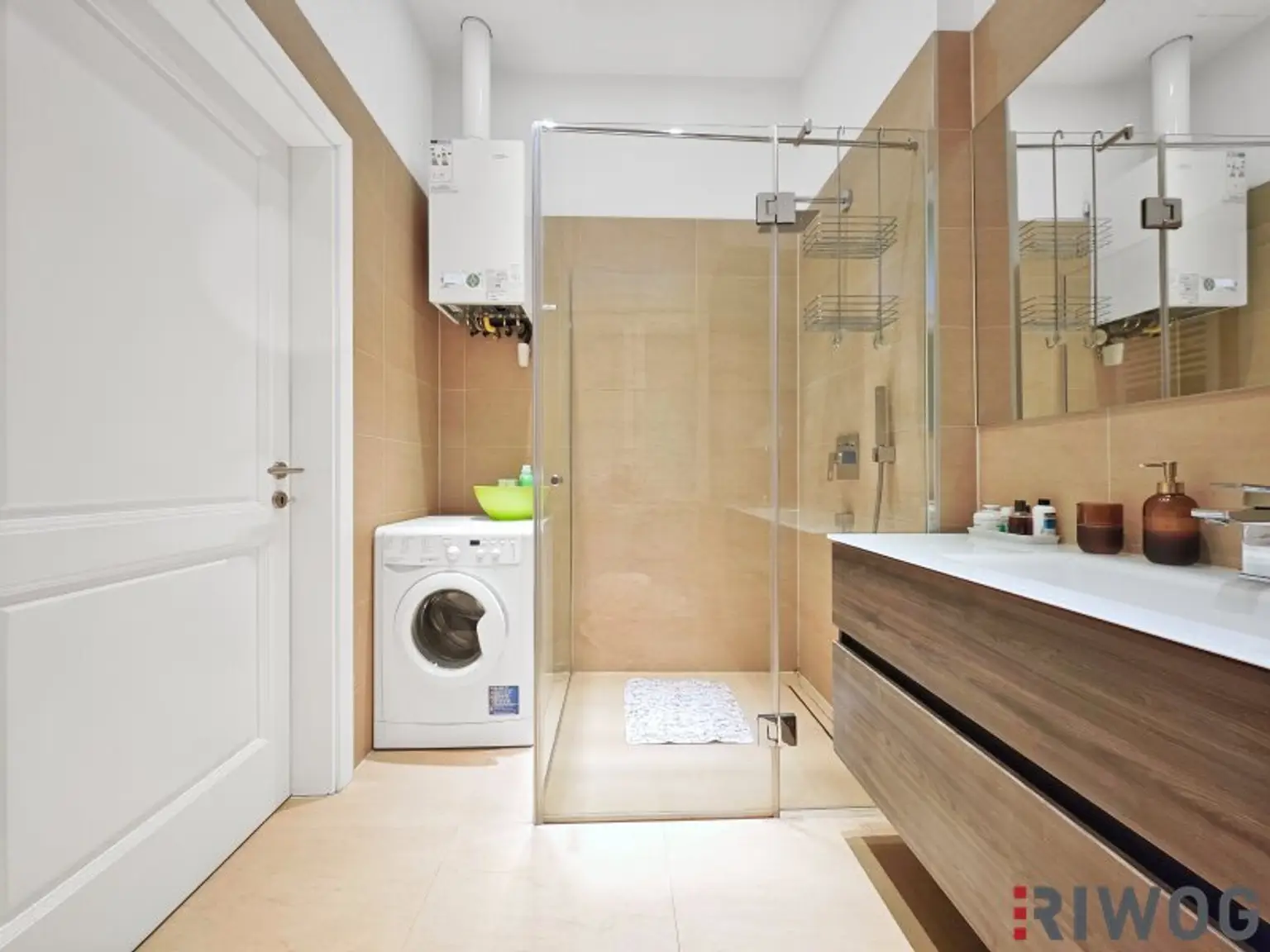 BADEZIMMER: mit Walk-In Dusche, Waschtisch, Waschmaschinenanschluss und Fenster