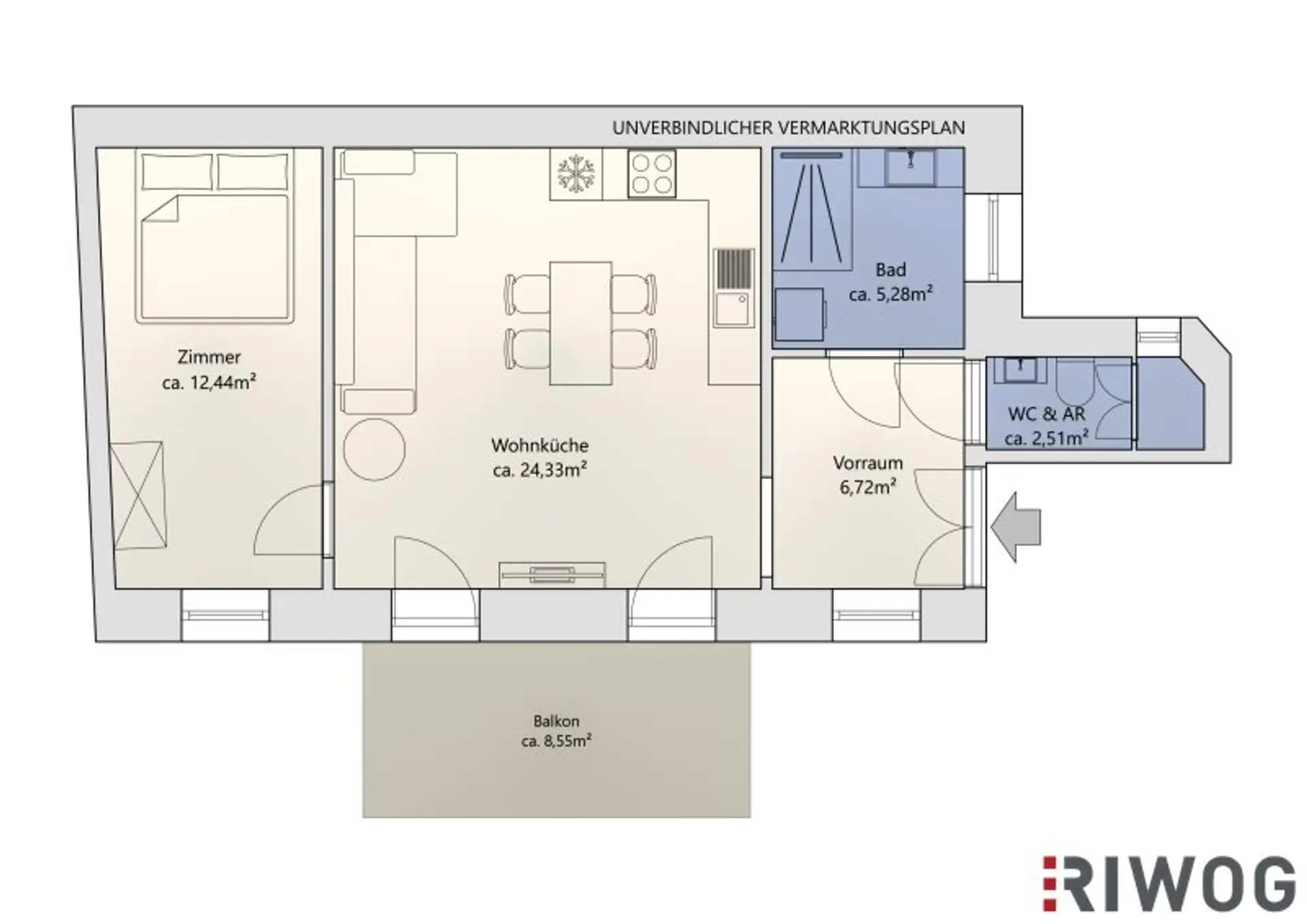 WOHNFLÄCHE: ca. 49,47 m² (laut NWG)