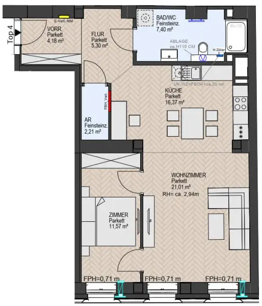 Ausstattung: Boden Bad Abstellraum Fußbodenheizung