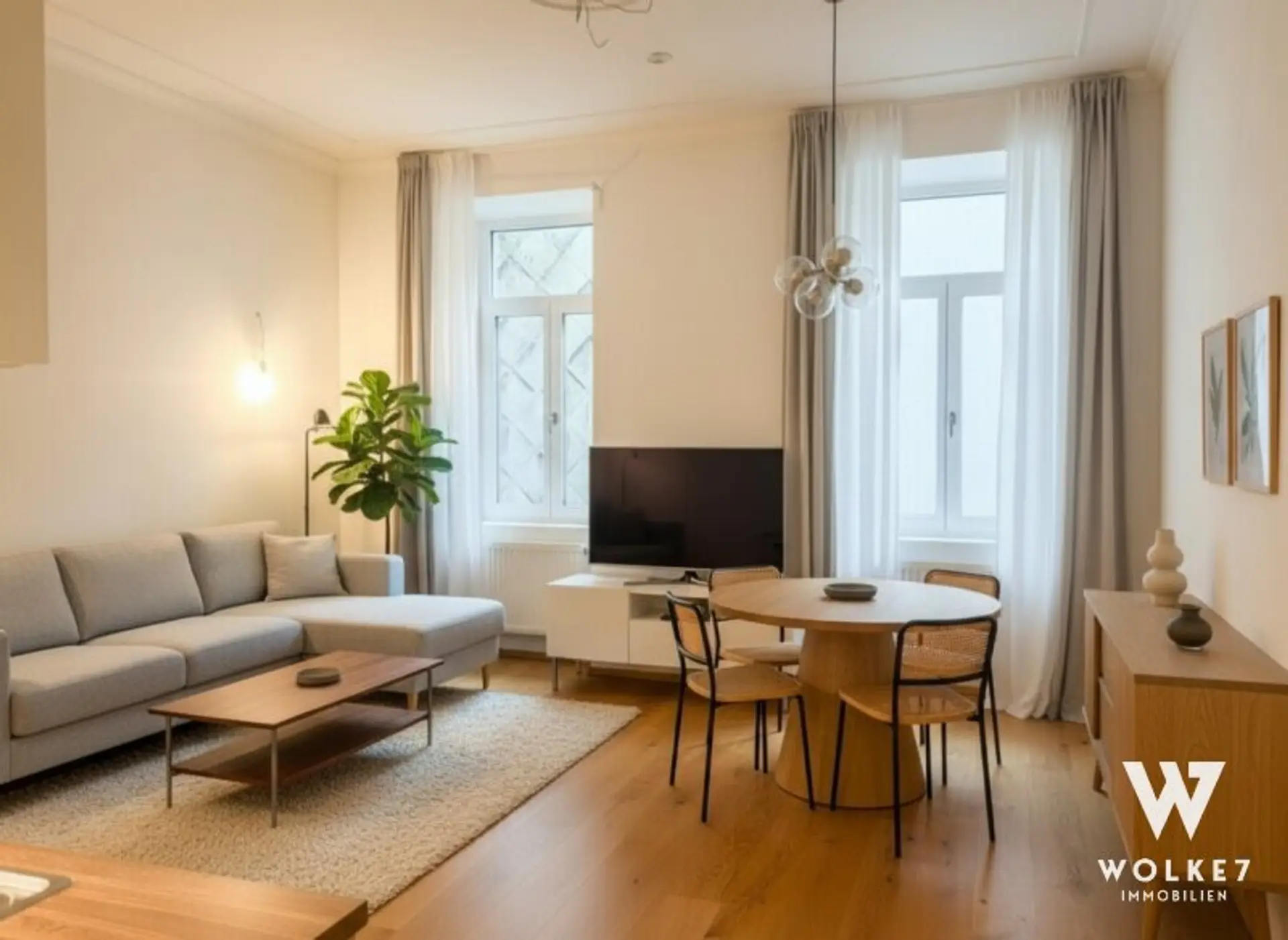 „Zeitlose Eleganz mit modernen Akzenten“ – die Wohnung soll den Charme des Altbaus (hohe Räume, Parkett, Gründerzeitdetails) bewahren und gleichzeitig durch klare, moderne Elemente ein zeitgemäßes Wohngefühl vermitteln.